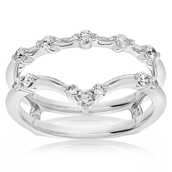 14k white gold diamond jacket from the Reis-Nichols Collection. The ring features 12 round brilliant cut diamonds weighing over 1/3 ctw. Size 6.5 in stock now. Special order sizes available. Pricing may vary with size of ring. Please call or email for size information and availability.