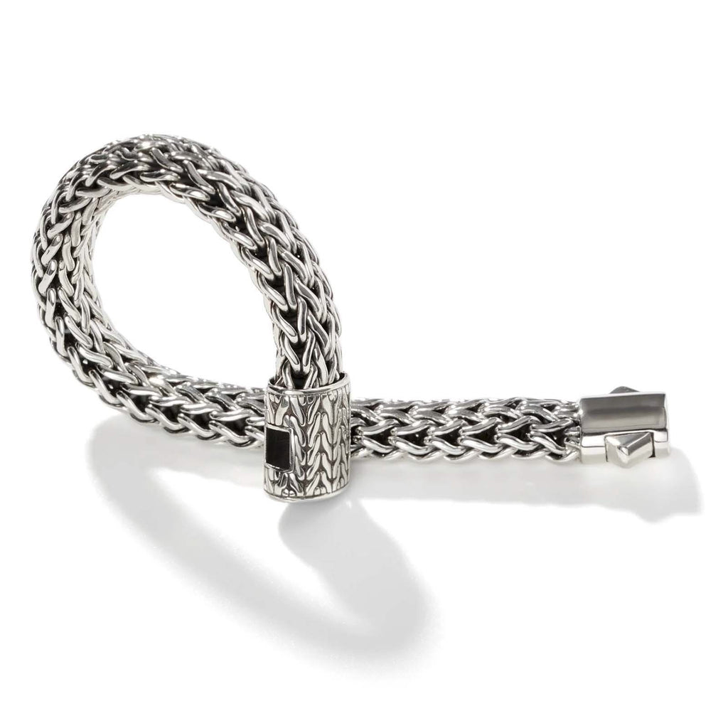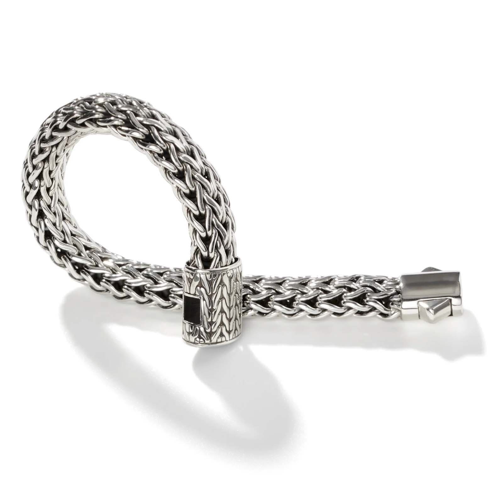 Sterling silver Icon bracelet. The bracelet measures 10.5mm in width and 8" in length. Designed by John Hardy.
