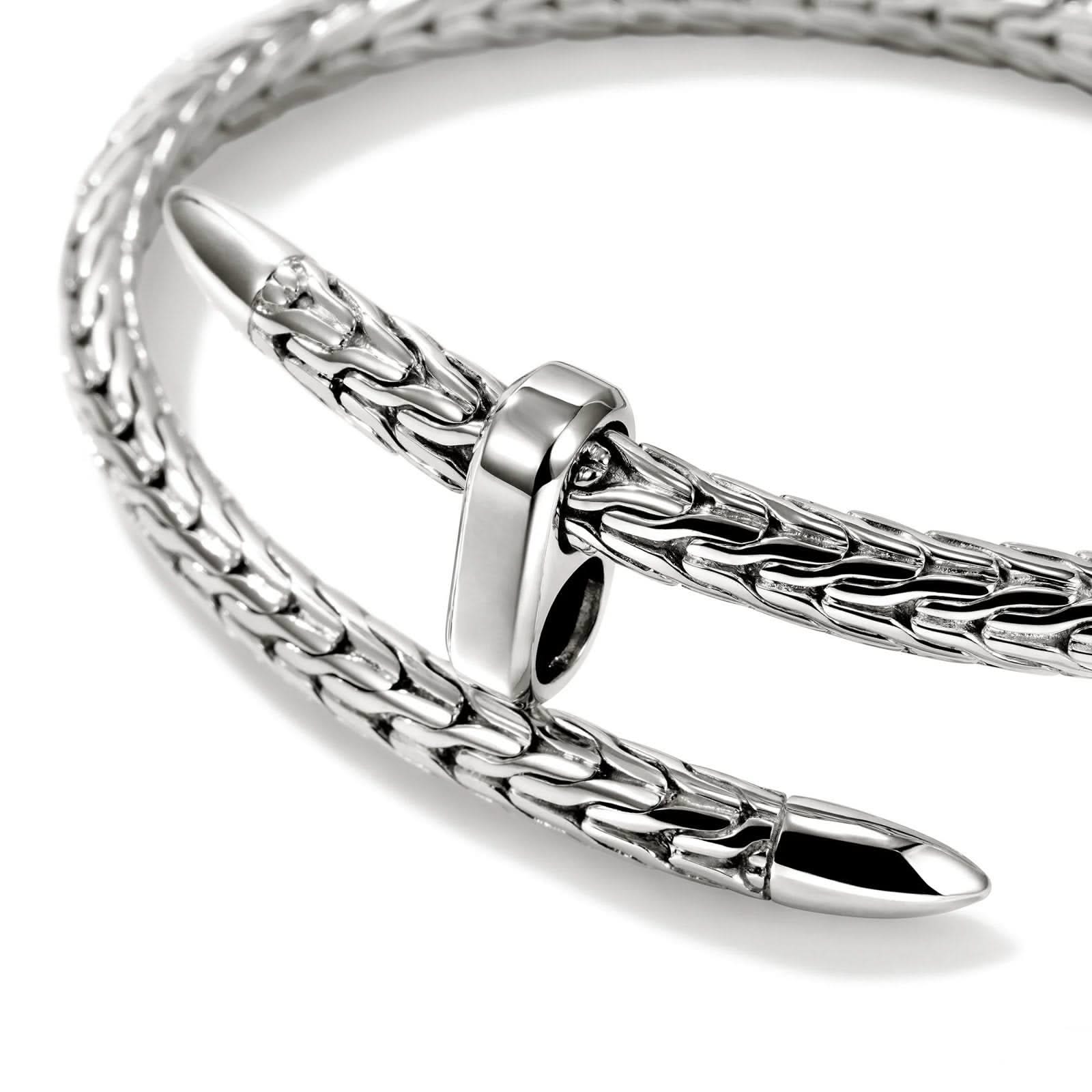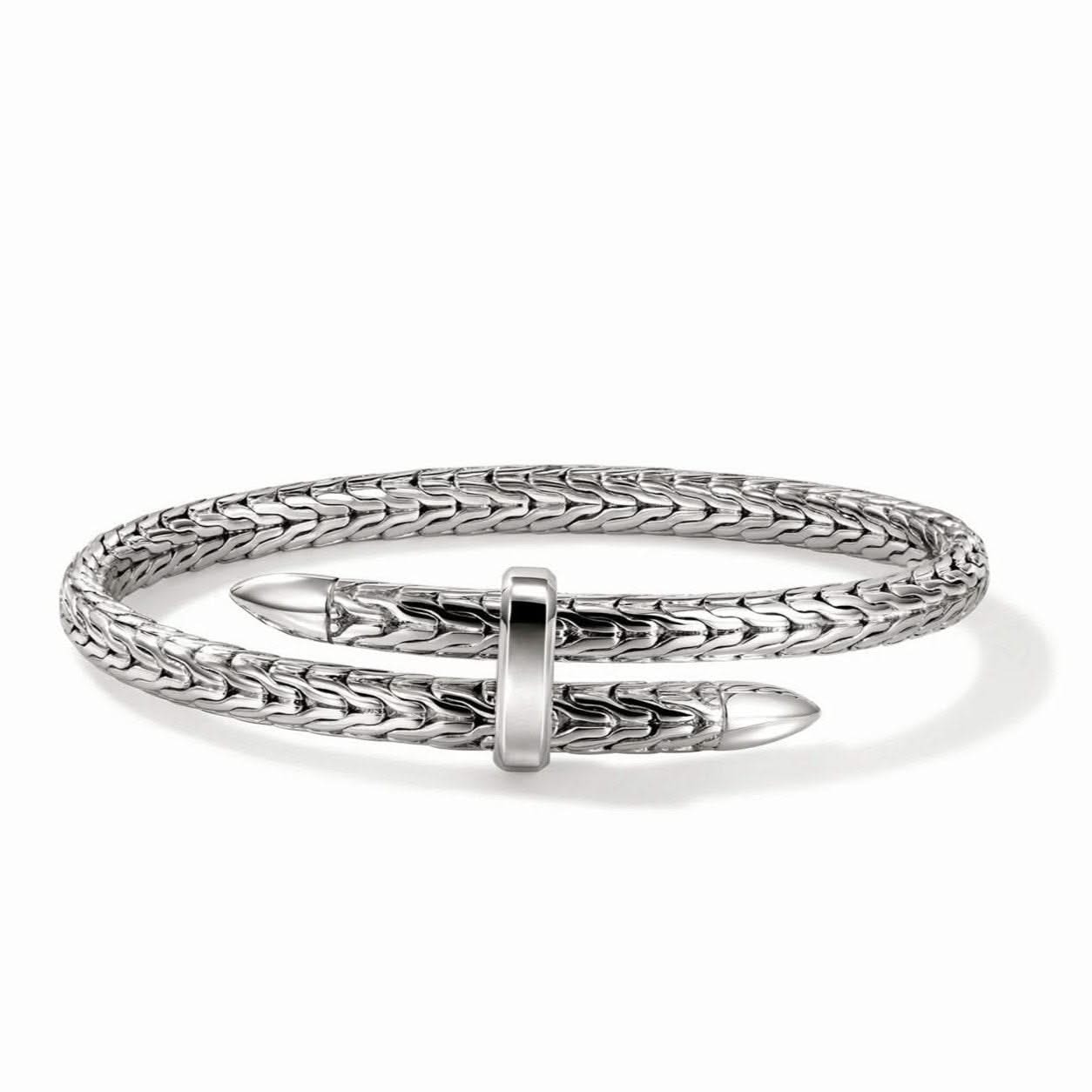 Sterling silver 5.5mm Spear bypass flex cuff. Designed by John Hardy.