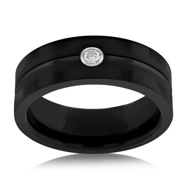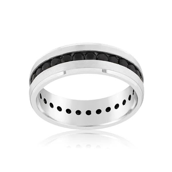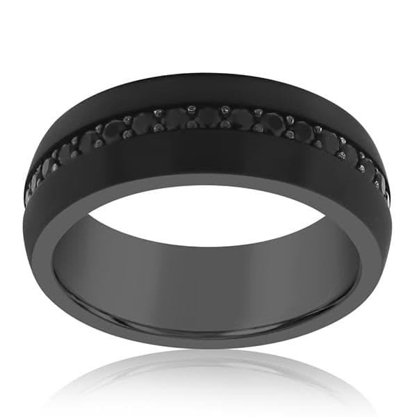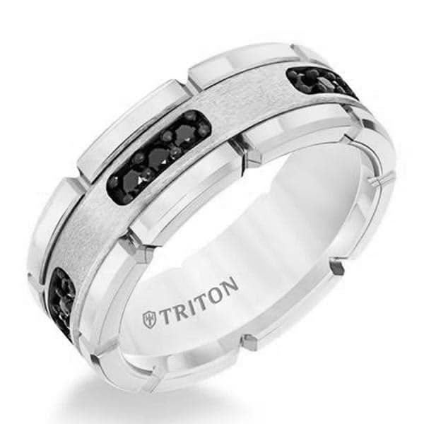 TRITON Black & Gray Tungsten Black Sapphire Wedding Band