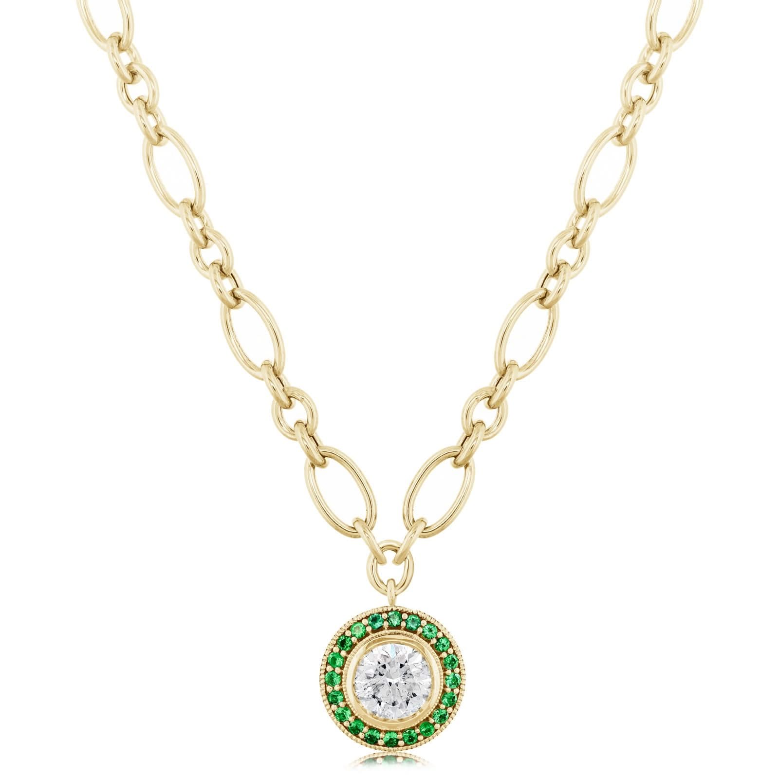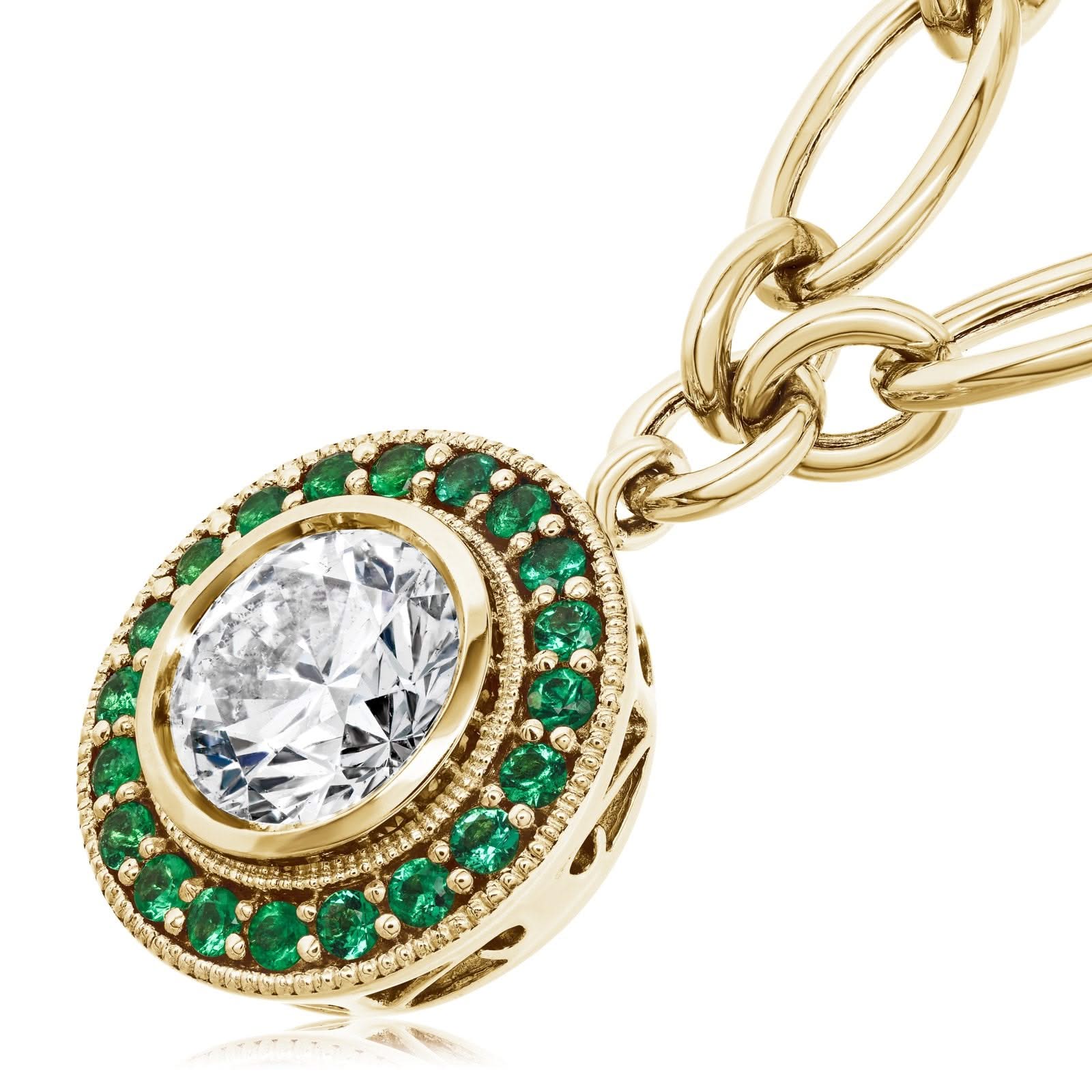 14K Gold Diamond & Emerald Vintage Style Necklace