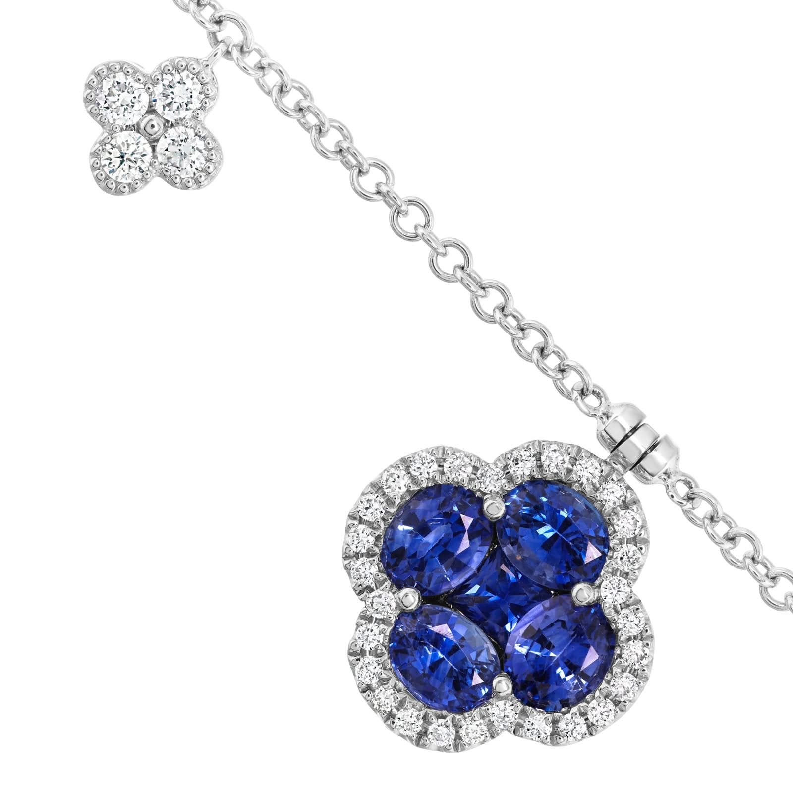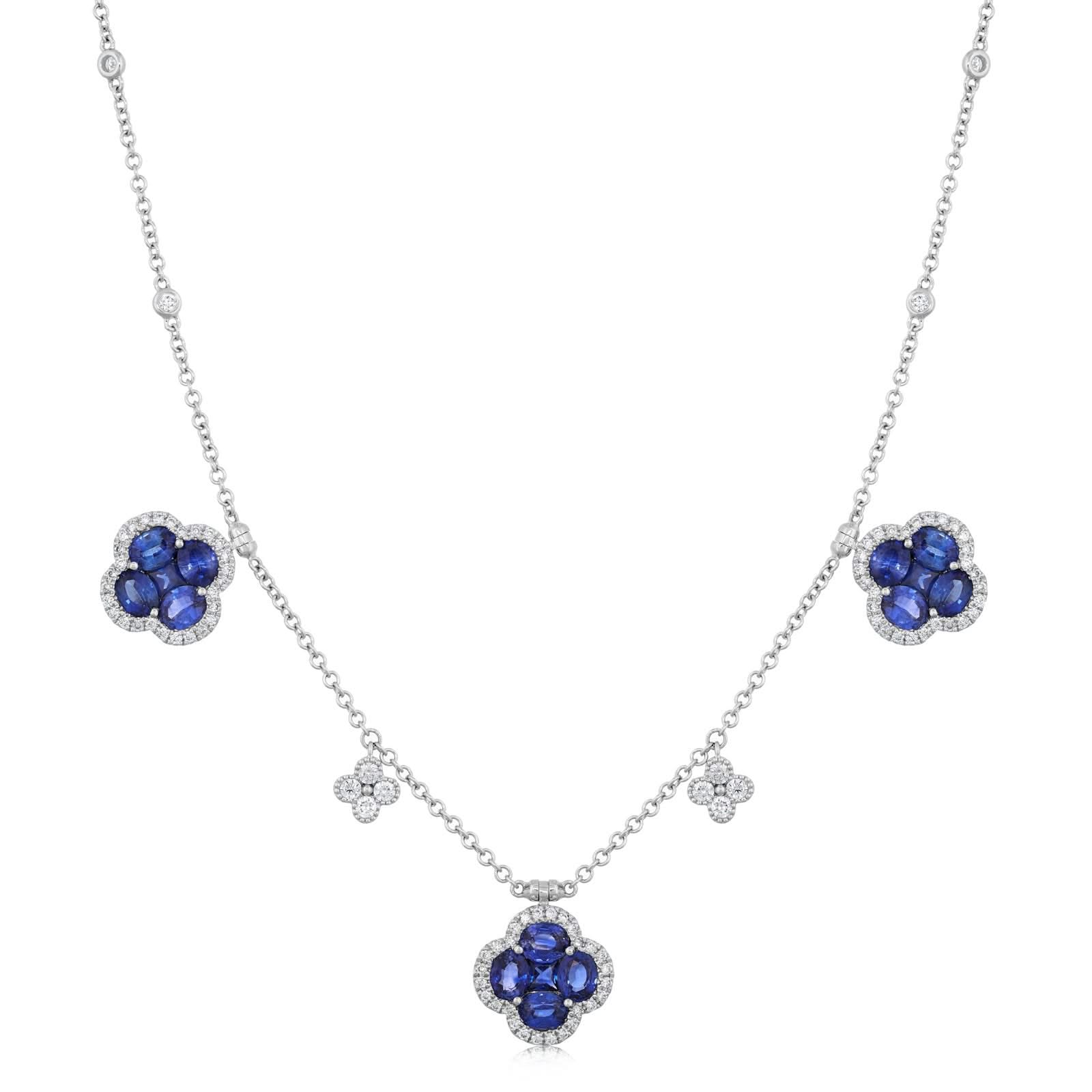 14K Gold Sapphire & Diamond Quatrafoil Station Necklace