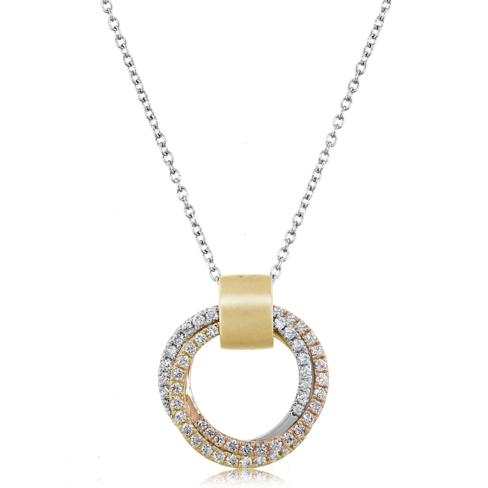 14K Gold Tri Color Diamond Interlocking Circle Pendant