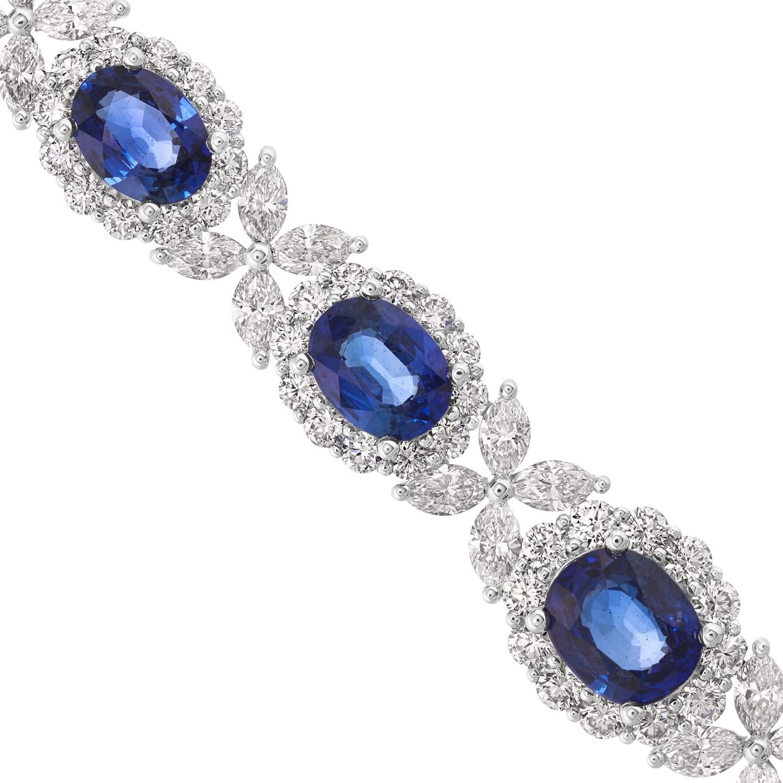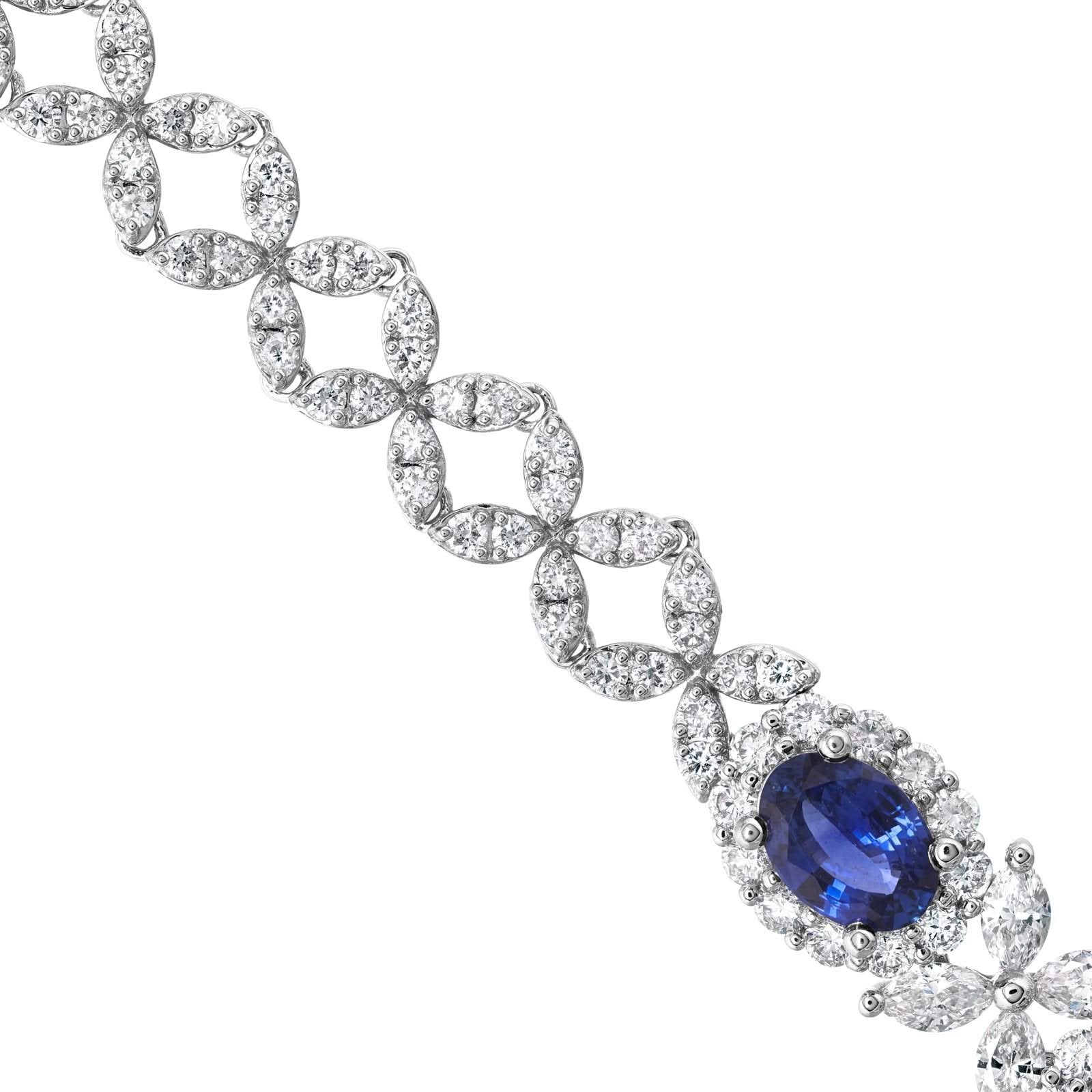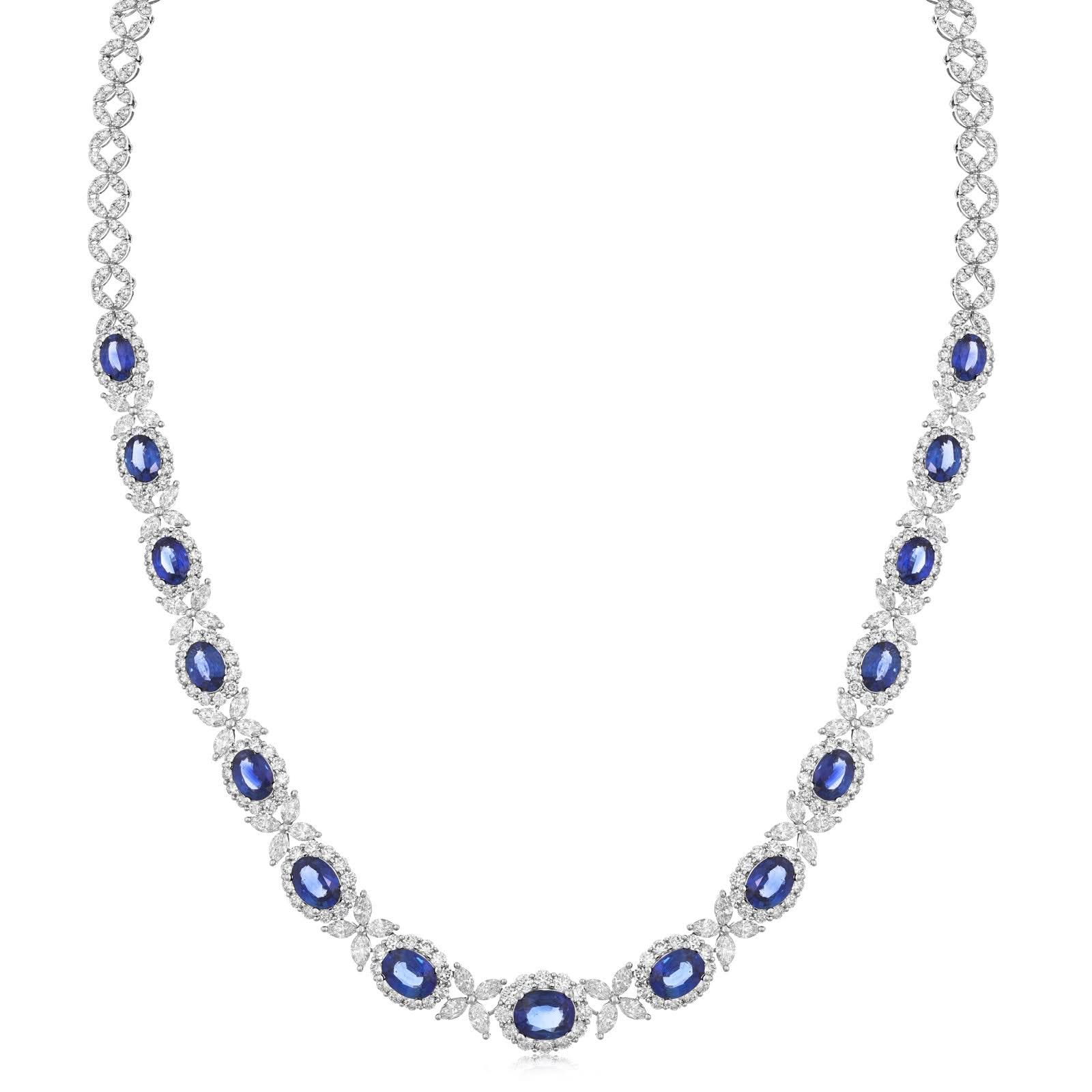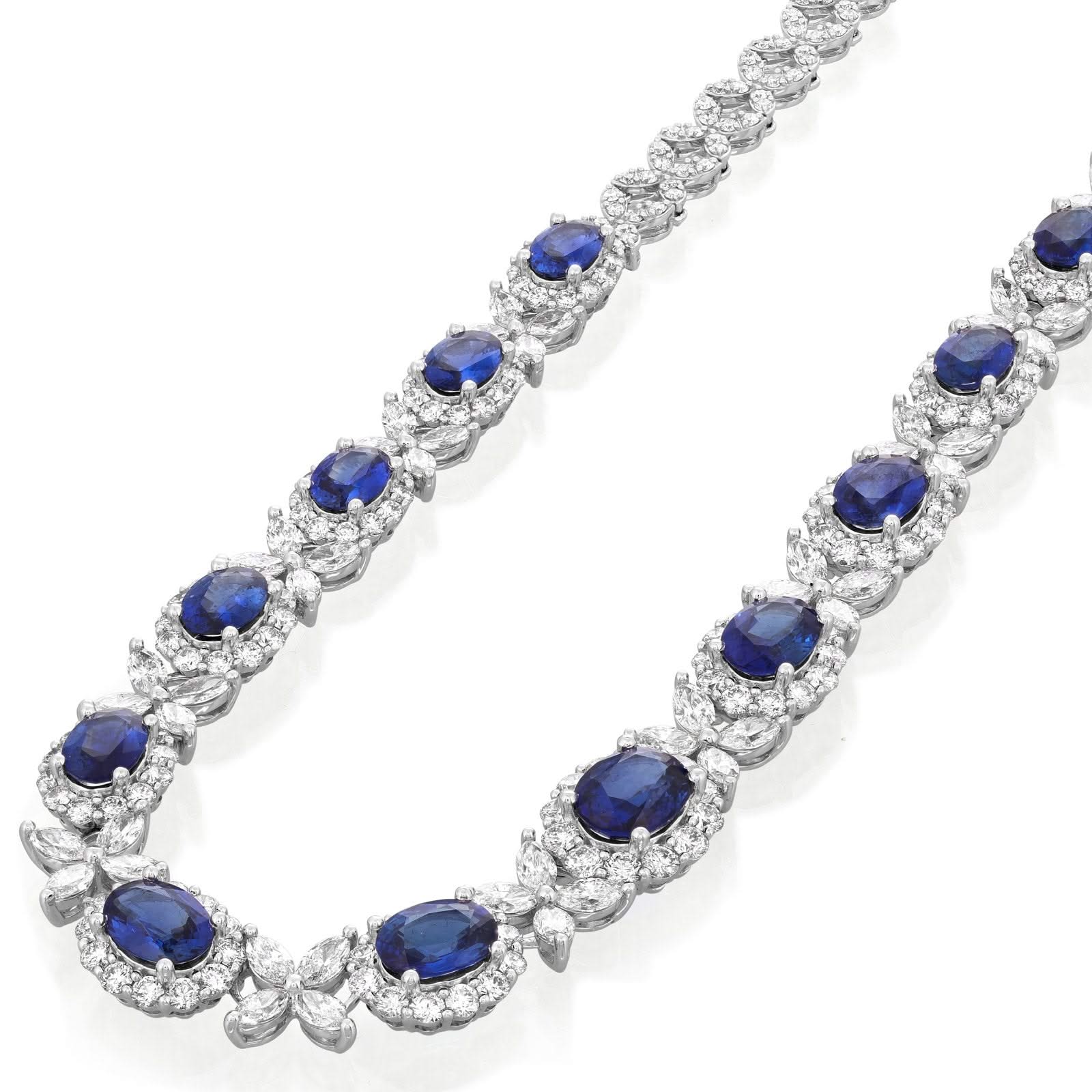 18K Gold Graduated Sapphire & Diamond Halo Necklace