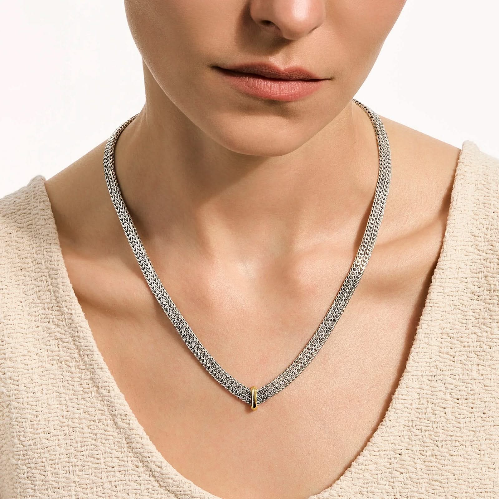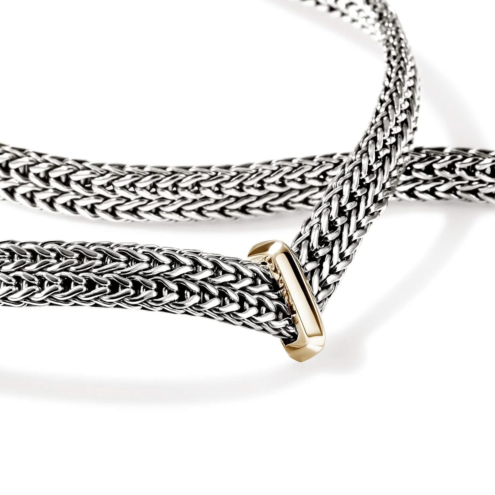 Sterling silver and 14k yellow gold 6mm Icon link center station necklace. The necklace measures 18" in length. Designed by John Hardy.