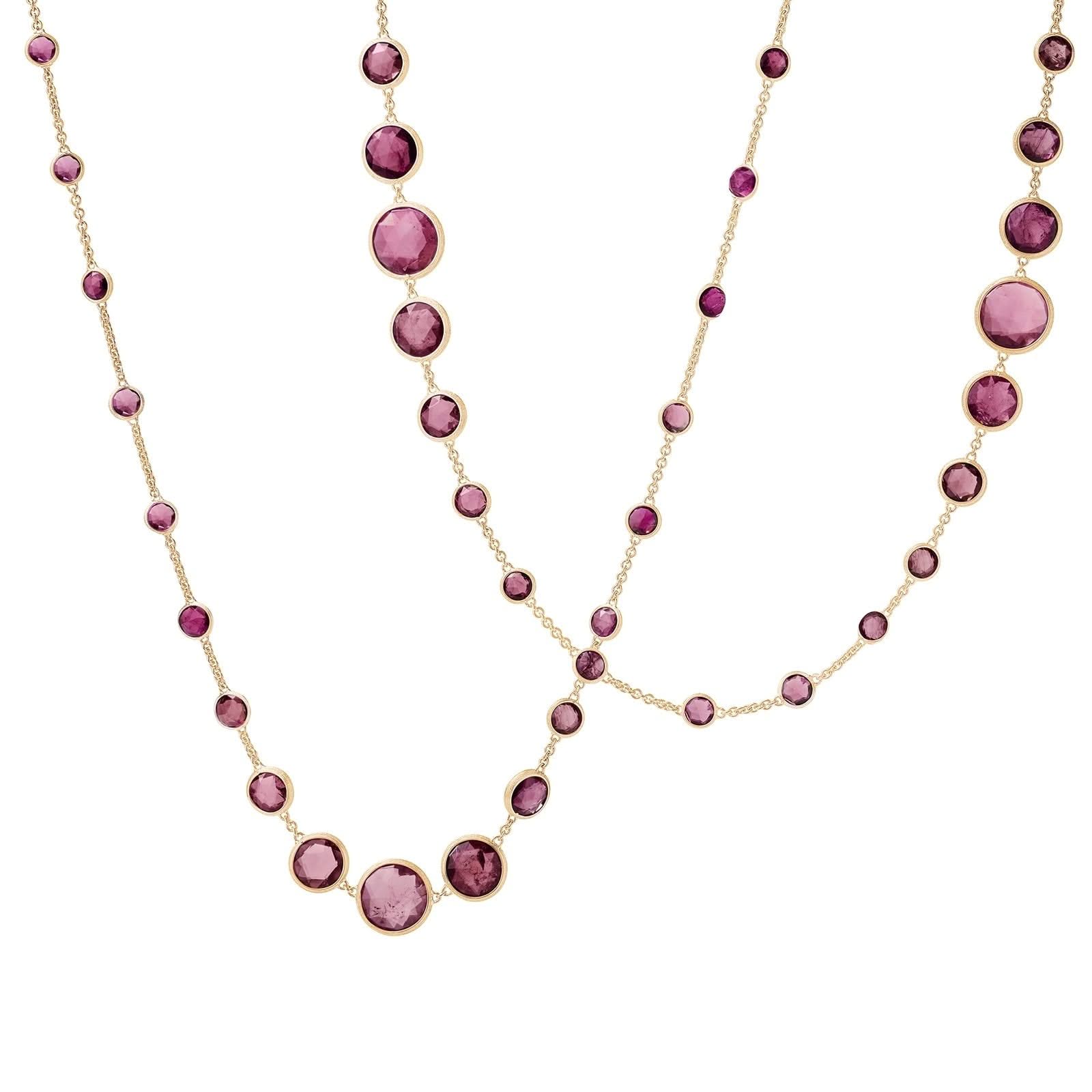 18K yellow gold Jaipur pink tourmaline necklace. The necklace is 36'' in length. Designed by Marco Bicego.