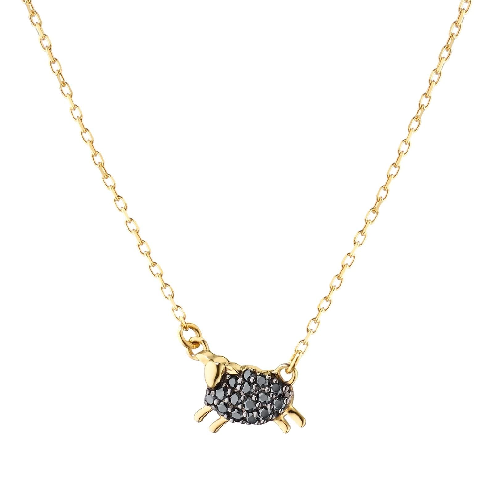 18K yellow gold Black Sheep charm necklace featuring round black diamonds weighing .11 ctw. The necklace is adjustable from 15-16-17" in length. Designed by Monica Rich Kosann.