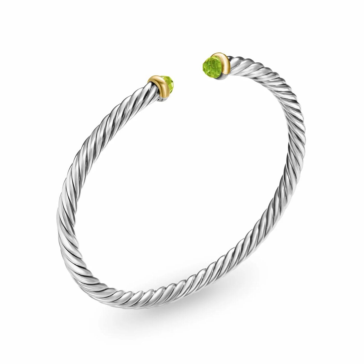 DAVID YURMAN Cable Flex Bracelet in Sterling Silver with 14K Yellow Gold and Peridot, 4mm