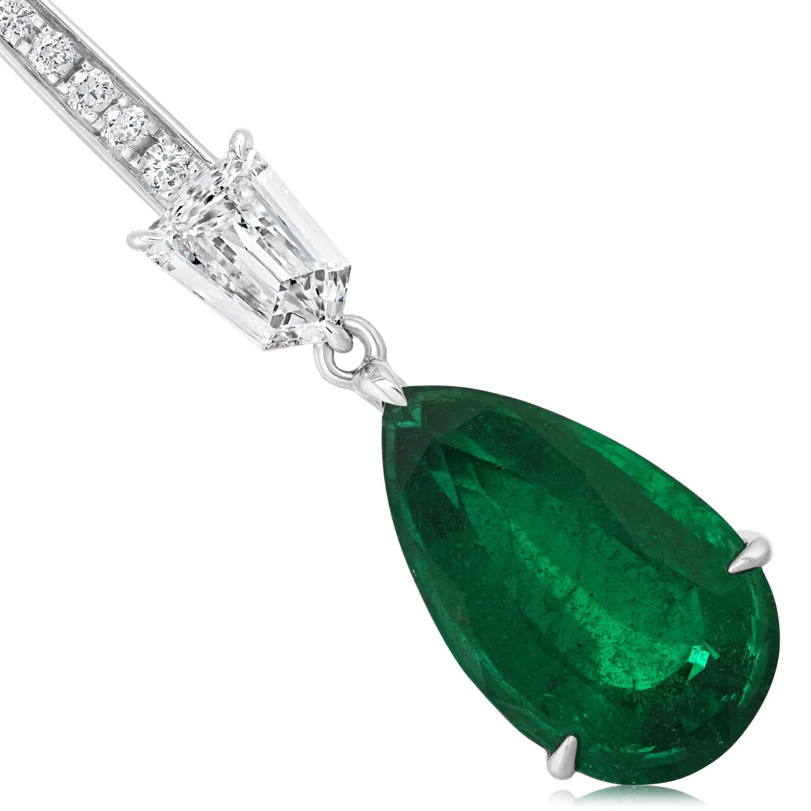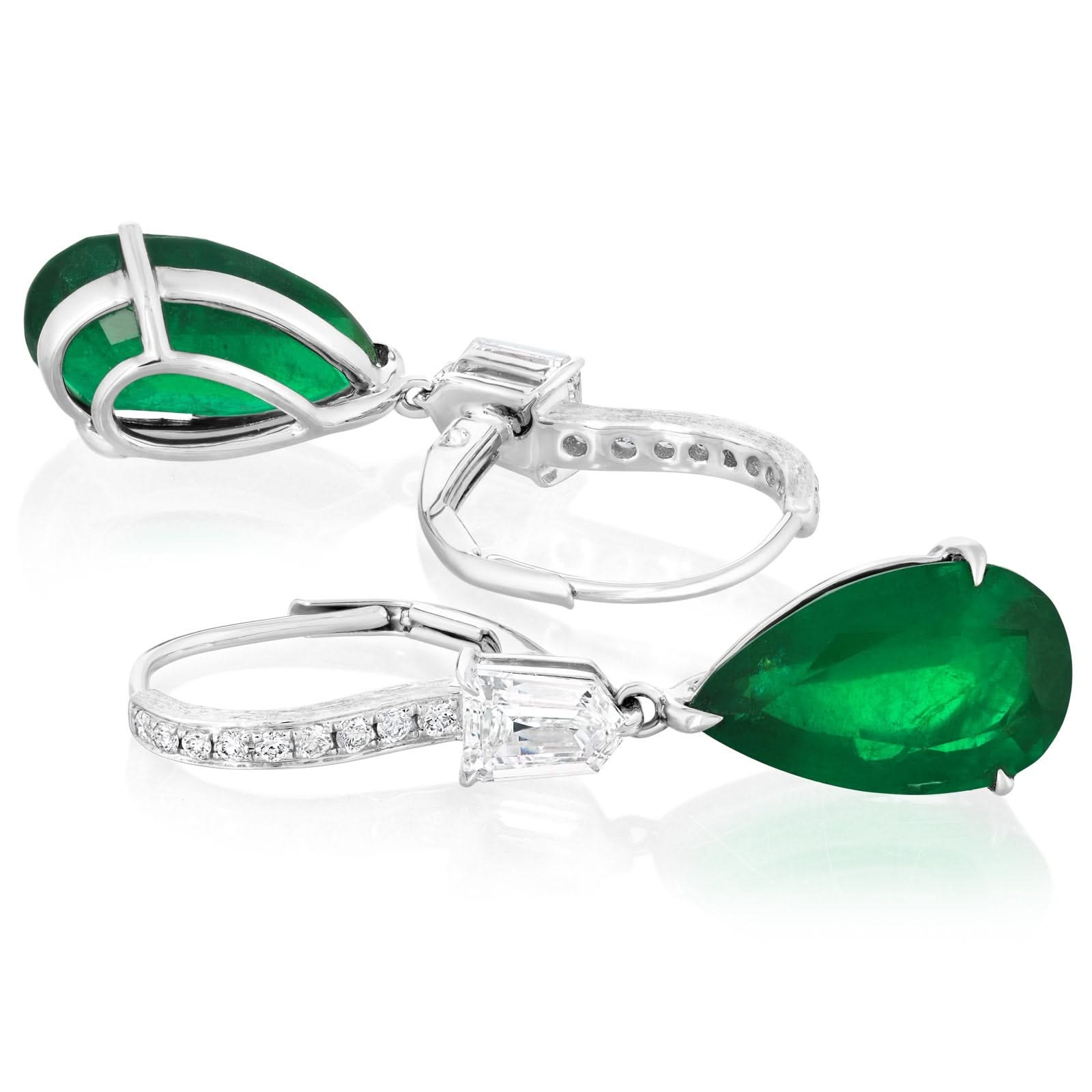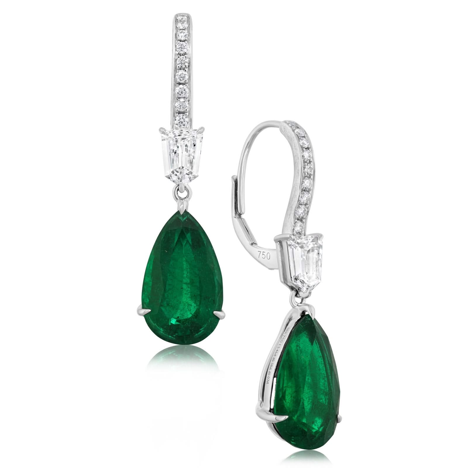 18K Pear Cut Emerald & Diamond Drop Earrings