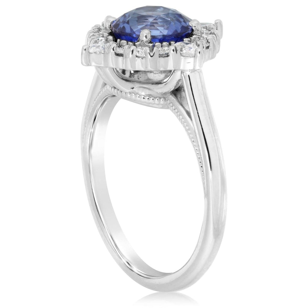 Sapphire Ring with Modified Diamond Halo