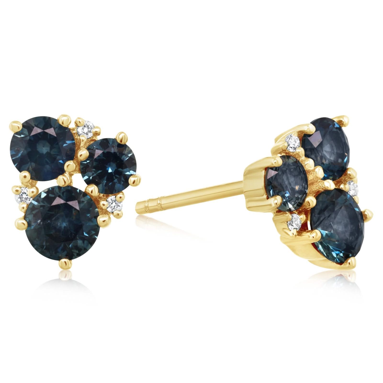 14K Gold Montana Sapphire & Diamond Cluster Earrings