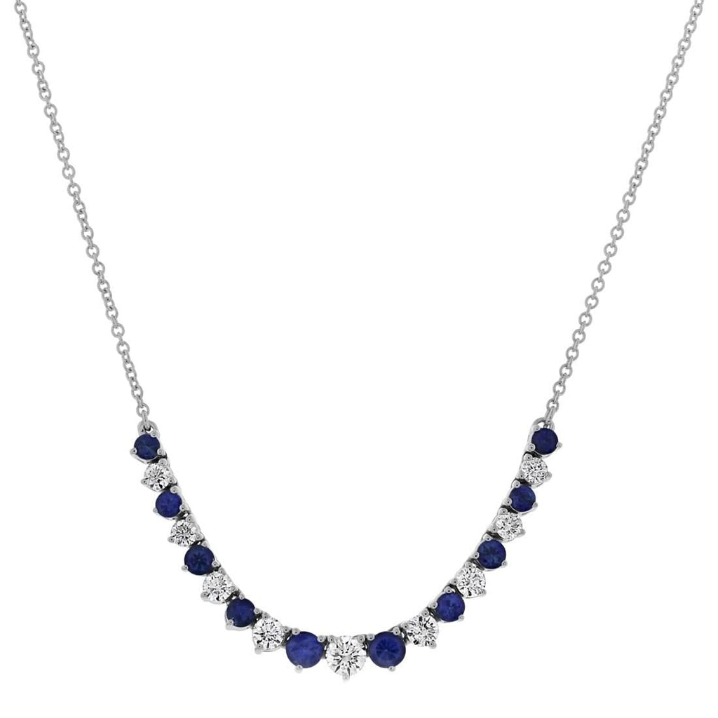 Blue Sapphire & Diamond Cross Pendant Necklace