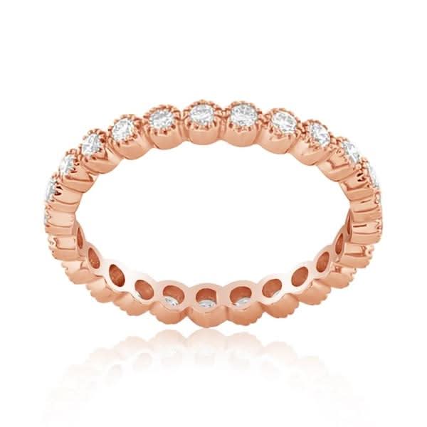 18K rose gold bezel diamond eternity band featuring 23 round brilliant cut diamonds weighing .70 ctw. Size 6 in stock now. Special order sizes also available. Designed by Sethi Couture.