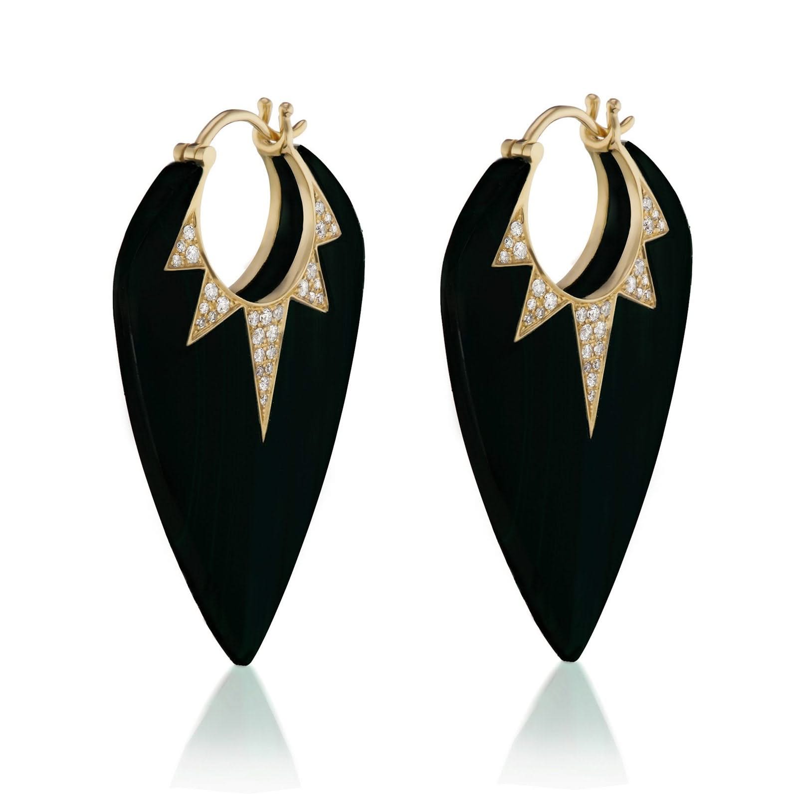 SORELLINA Large Black Onyx Guitar Pick Earrings