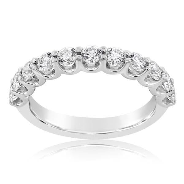 14K white gold diamond wedding band from the Reis-Nichols Collection. The band features 11 round brilliant cut diamonds weighing approximately 1.10 ctw. Size 7 in stock now. Special order sizes also available. Pricing may vary with size of ring.