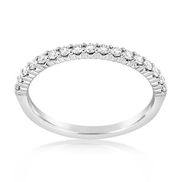 18K white gold diamond wedding band from the Reis-Nichols Collection. The band features 17 round brilliant cut diamonds weighing .34 ctw. Size 6 in stock now. Special order sizes also available. Pricing may vary with size of ring.