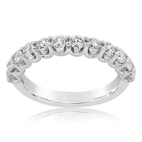 14K white gold diamond wedding band from the Reis-Nichols Collection. The band features 12 round brilliant cut diamonds weighing approximately 1.00 ctw. Size 7 in stock now. Special order sizes also available. Pricing may vary with size of ring.