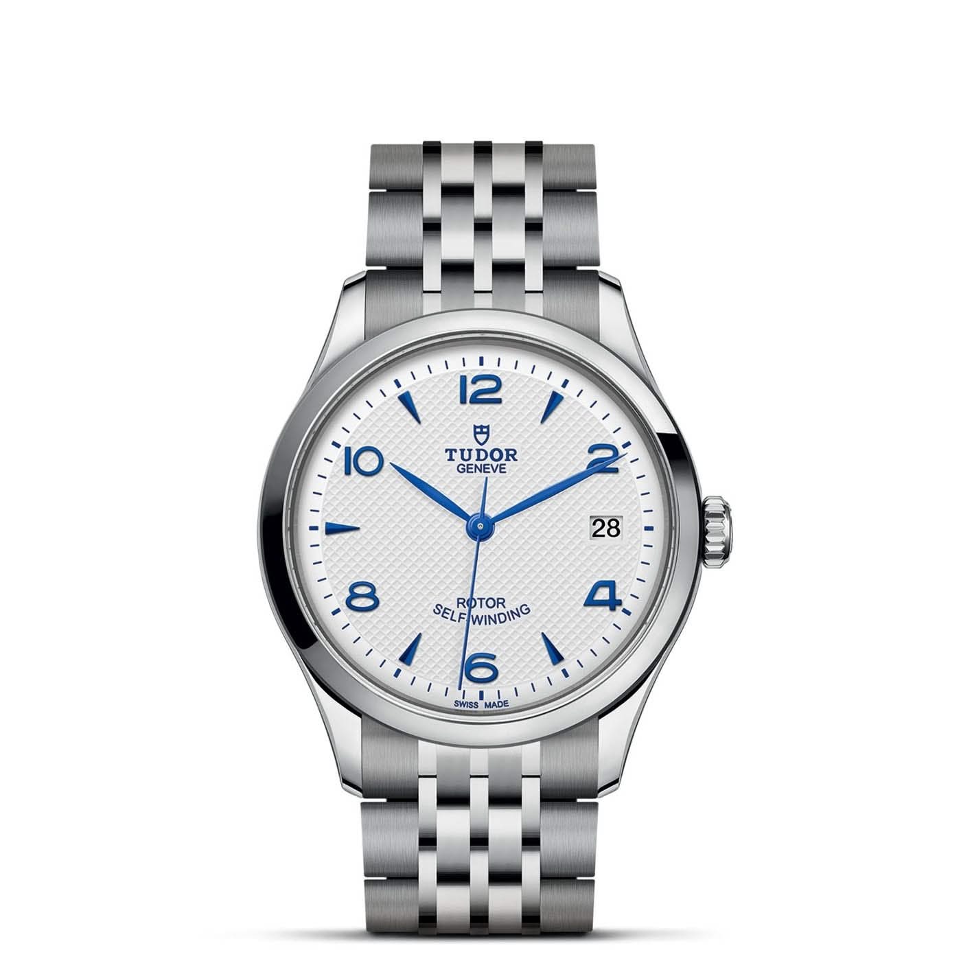 Stainless steel TUDOR 1926 automatic watch featuring an opaline decorated index/arabic date dial with a high polished bezel and case. The watch case is 36mm and is attached to a stainless steel bracelet.
