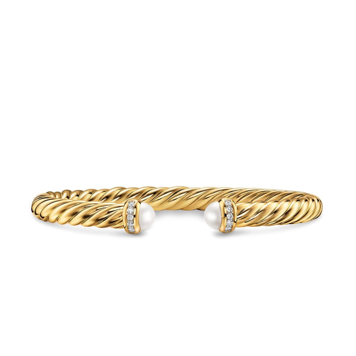 18-karat yellow gold, Turquoise, Pavé set diamonds, 0.13 total carat weight, Bracelet, 6mm, Cablespira® is a patented DY construction that is highly flexible and exceptionally comfortable to wear. Designed by David Yurman.
