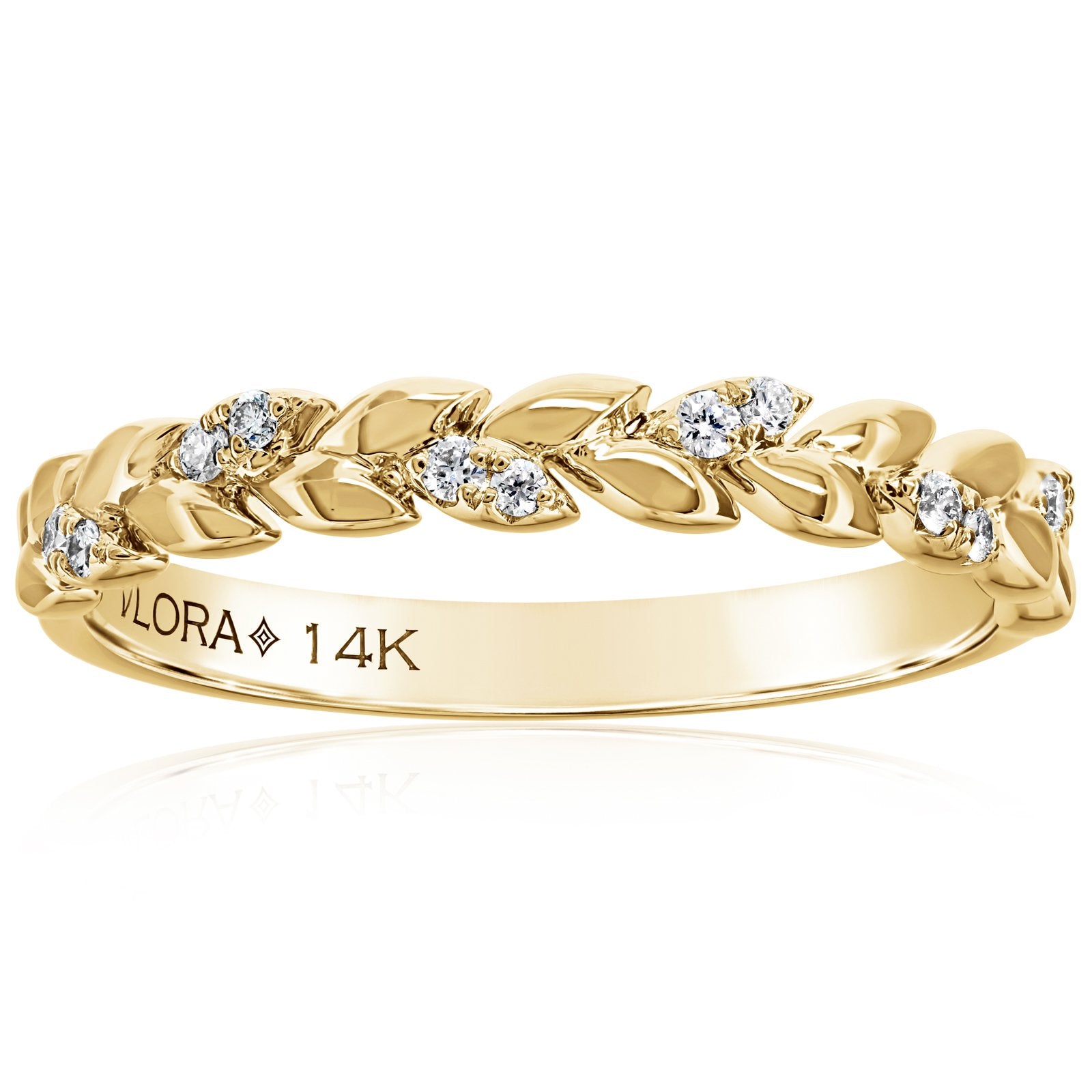 14K Gold .09 CTW Leaf Diamond Wedding Band