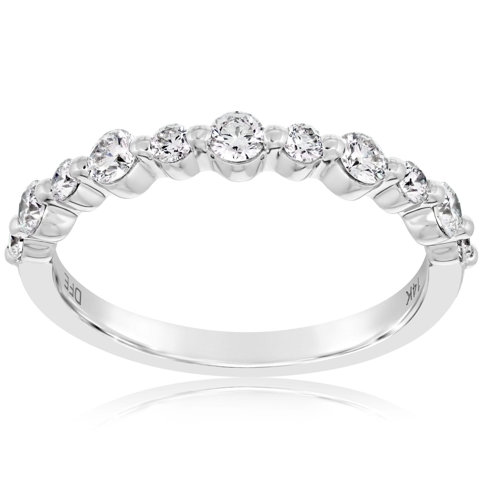 14K white gold diamond band from Reis-Nichols Collection. The band features 11 brilliant round diamonds weighing .50 ctw. Size 6.5 in stock. Special order sizes available. Pricing may vary with size.