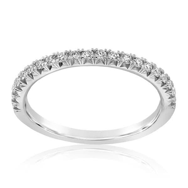14K white gold diamond wedding band from the Reis-Nichols Collection. The band features 21 round brilliant cut diamonds weighing .26 ctw. Size 6.5 in stock now. Special order sizes also available. Pricing may vary with size of ring.