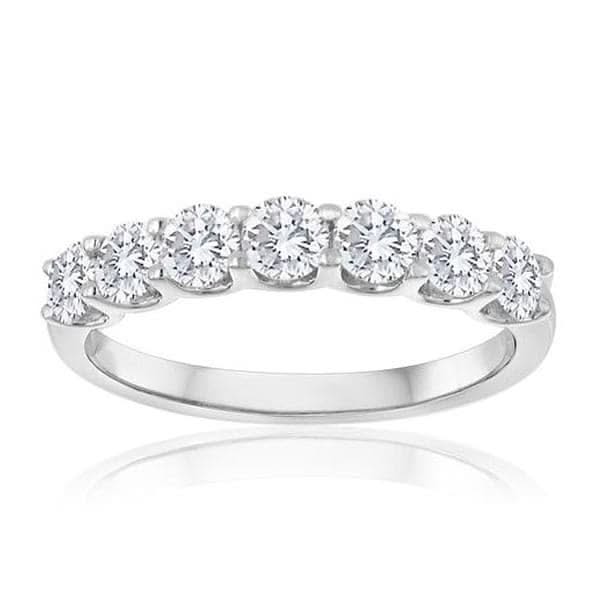 14k white gold diamond wedding band from the Reis-Nichols Collection. The band features seven round brilliant cut diamonds weighing approximately 1 ctw. Please call or email for size information and availability.