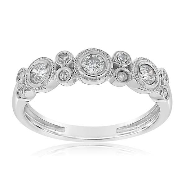 14k white gold diamond wedding band from the Reis-Nichols Collection featuring 11 round brilliant cut diamonds weighing 0.33 ctw.