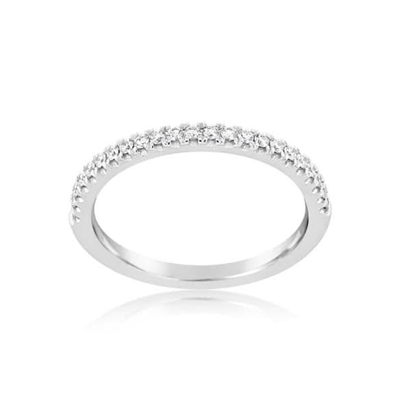 14K white gold diamond wedding band from the Reis-Nichols Collection. The ring features 23 round brilliant cut diamonds weighing .20 ctw. Size 6.5 in stock now. Special order sizes also available. Pricing may vary with size of ring.