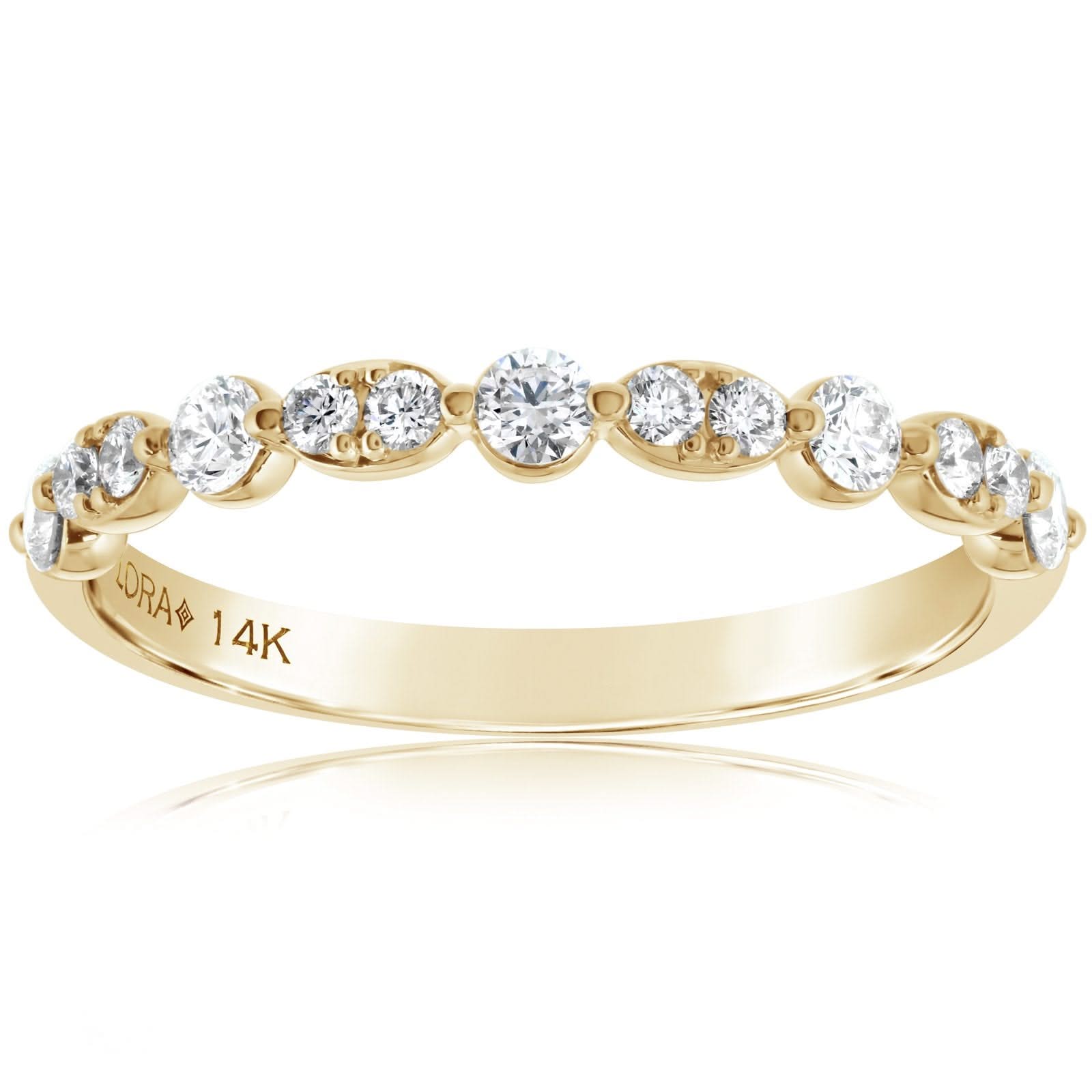 14K yellow gold diamond wedding band from the Reis-Nichols Collection. The band features 13 round brilliant cut diamonds weighing over 1/3 ctw. Size 6.5 in stock. Special order sizes available. Pricing may vary with size.