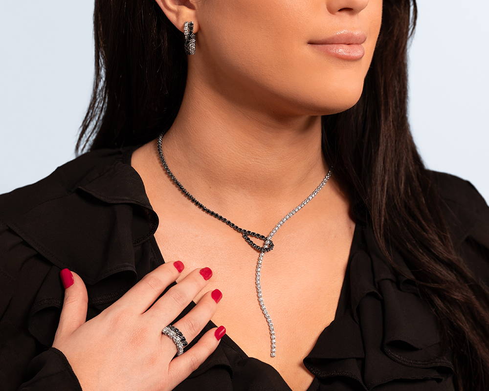 Black and white themed jewelry for the big race adds a playful twist to trackside fashion, echoing the iconic checkered flag’s colors with flair. Whether it’s striking black and white diamond statement pieces or chic, more casual beaded designs, these accessories inject a thrilling sense of excitement and style into the festivities of the main event.