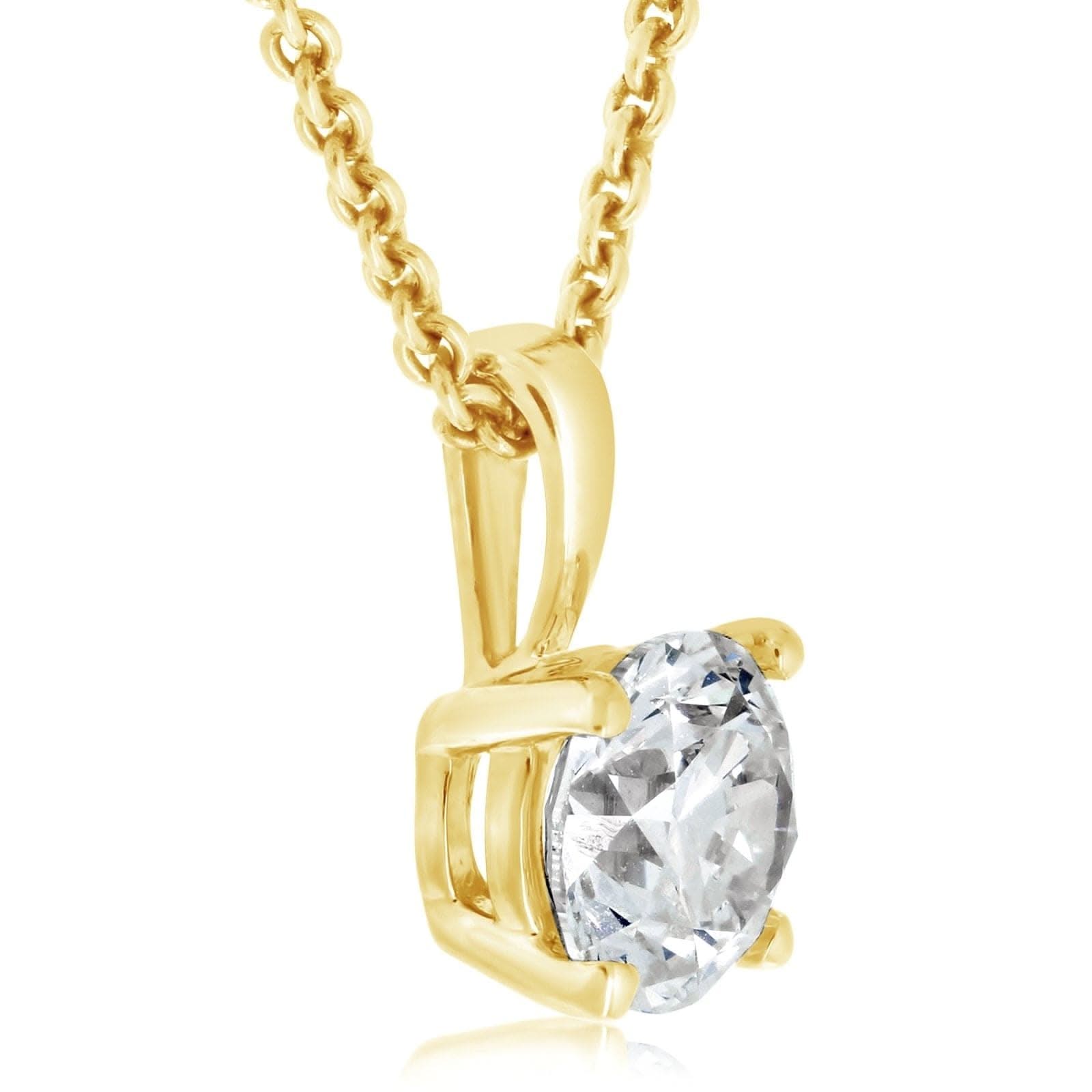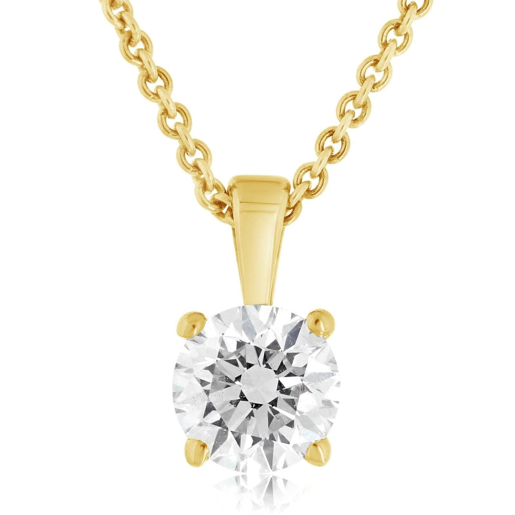 14K yellow gold diamond solitaire pendant from the Reis-Nichols Collection. The pendant features one round brilliant cut diamond weighing .80 ct. Chain sold separately.