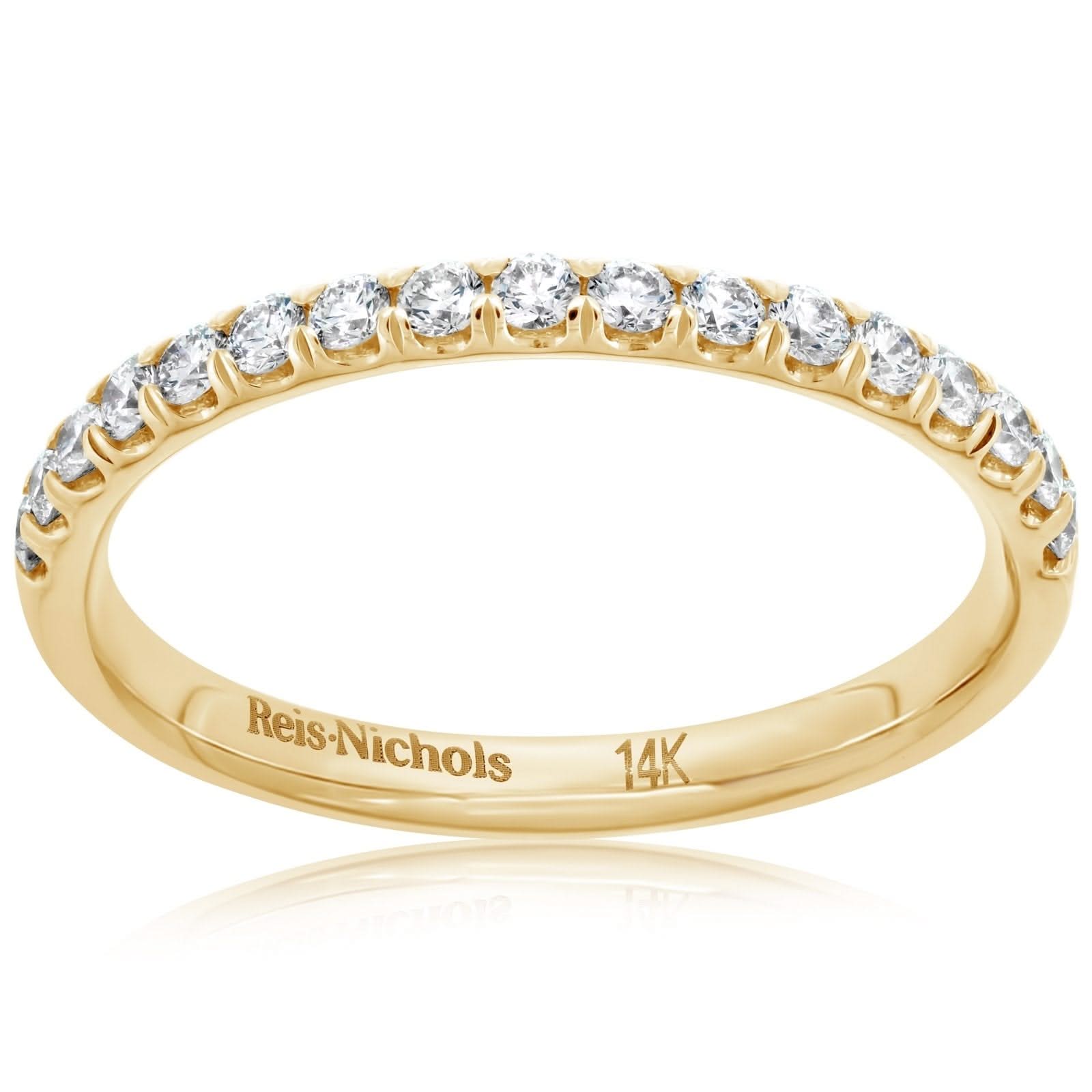 14K yellow gold diamond wedding band from the Reis-Nichols Collection. The band features 17 round brilliant cut diamonds weighing .33 ctw. Size 6.5 in stock now. Special order sizes also available. Pricing may vary with size of ring.