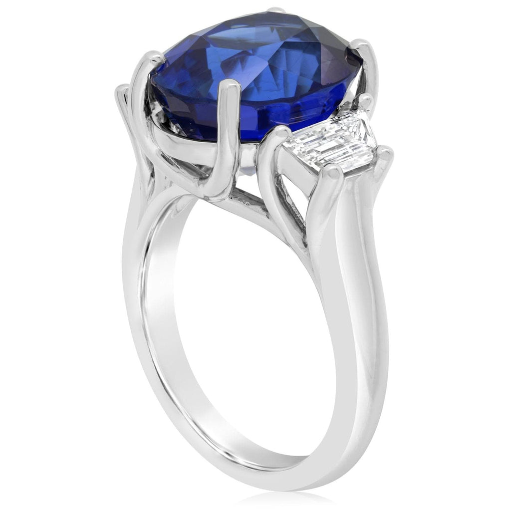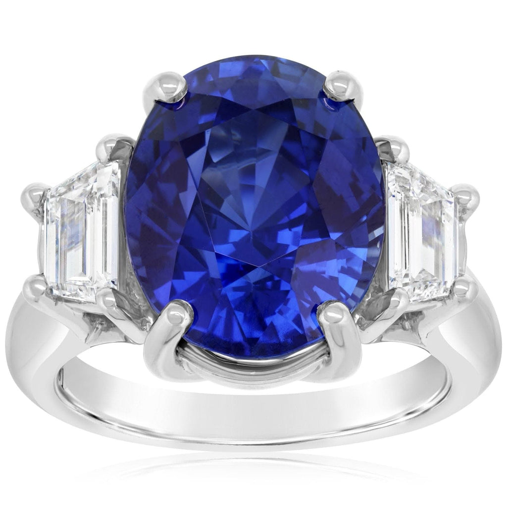 11.55 Carat Oval Sapphire & Trapezoid Diamond Ring