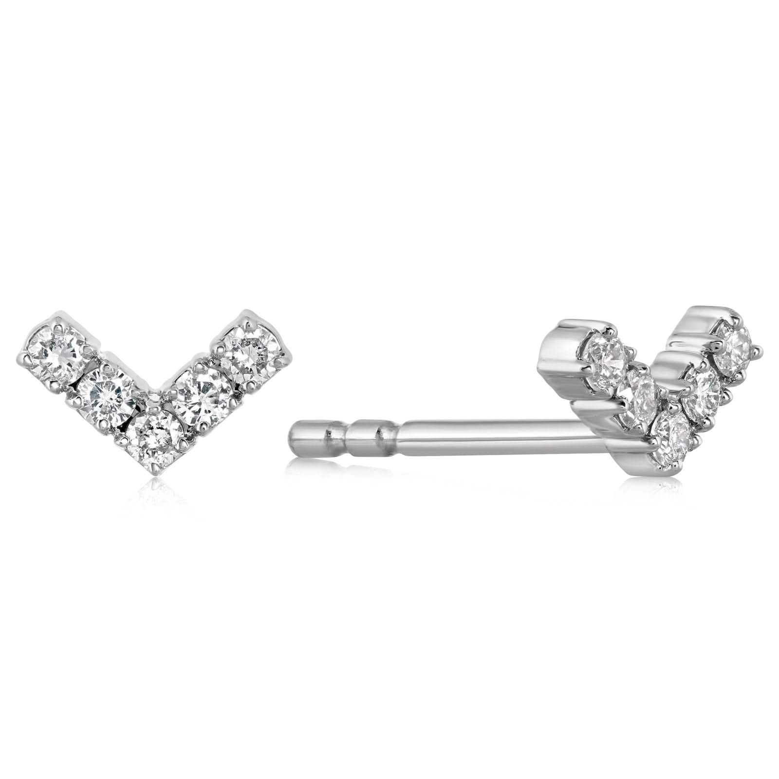 14K Gold .1 CTW Round Diamond V Stud Earrings