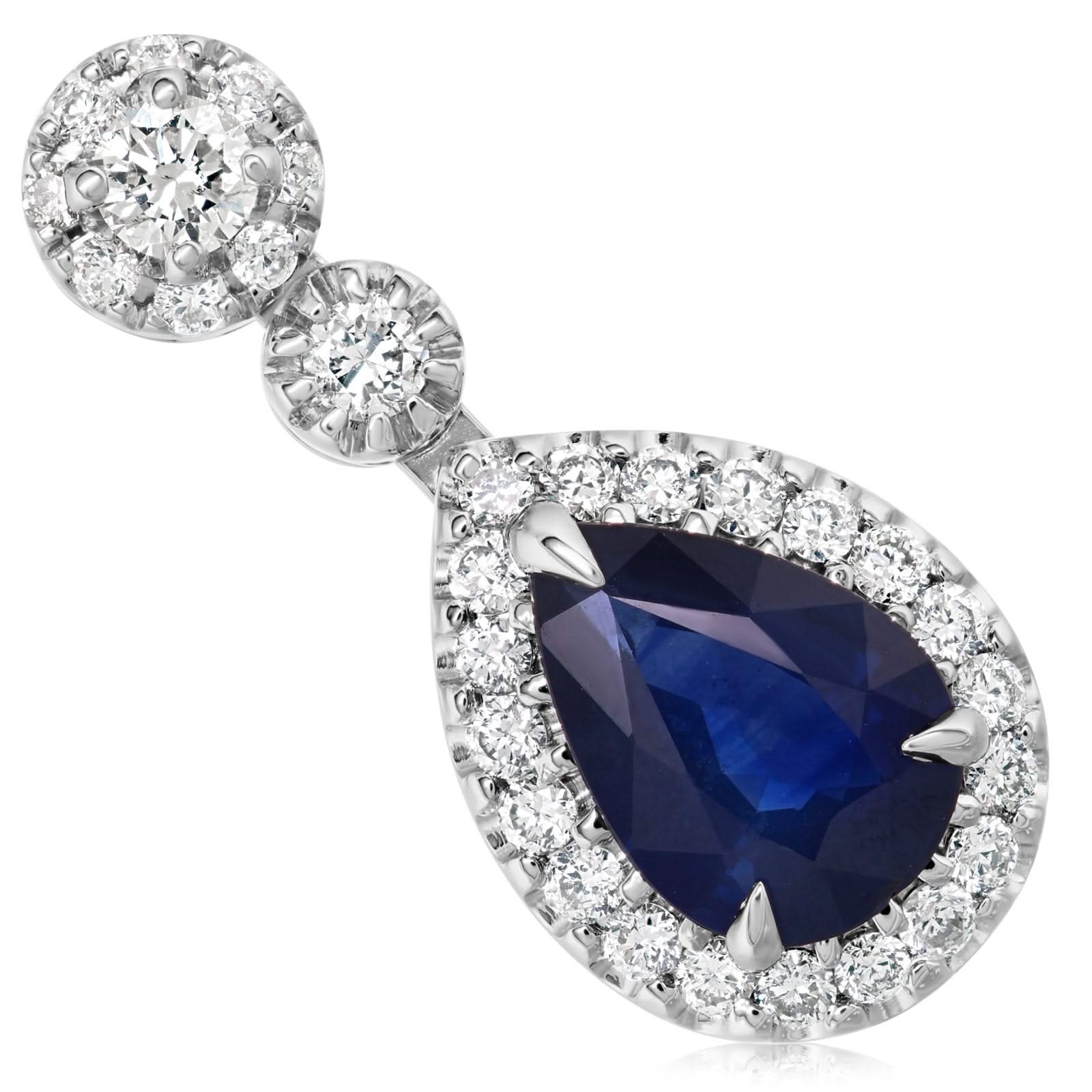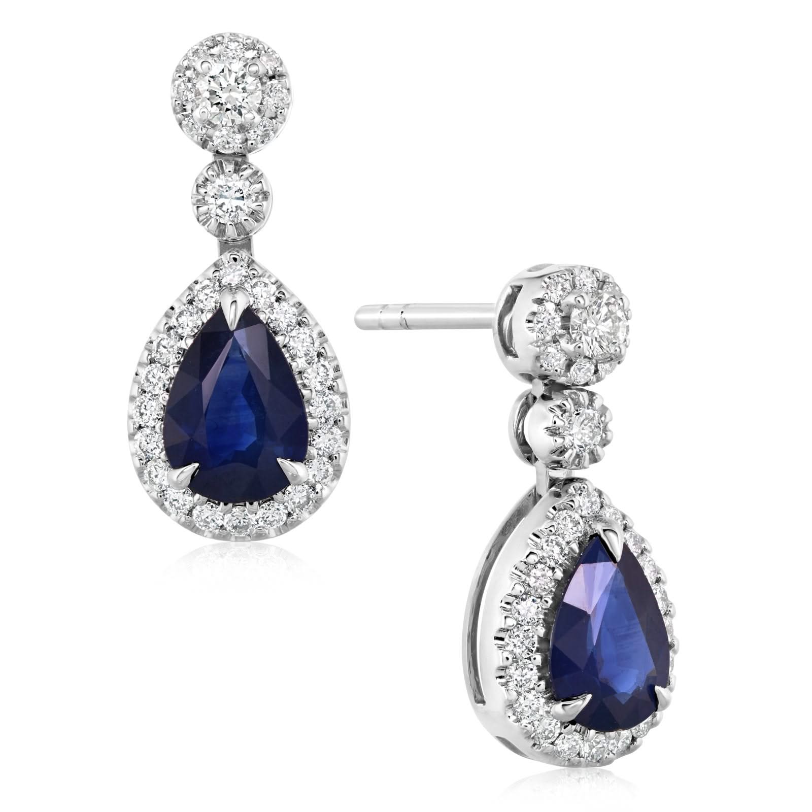 14K Gold Pear Shaped Sapphire & Diamond Halo Drop Earrings