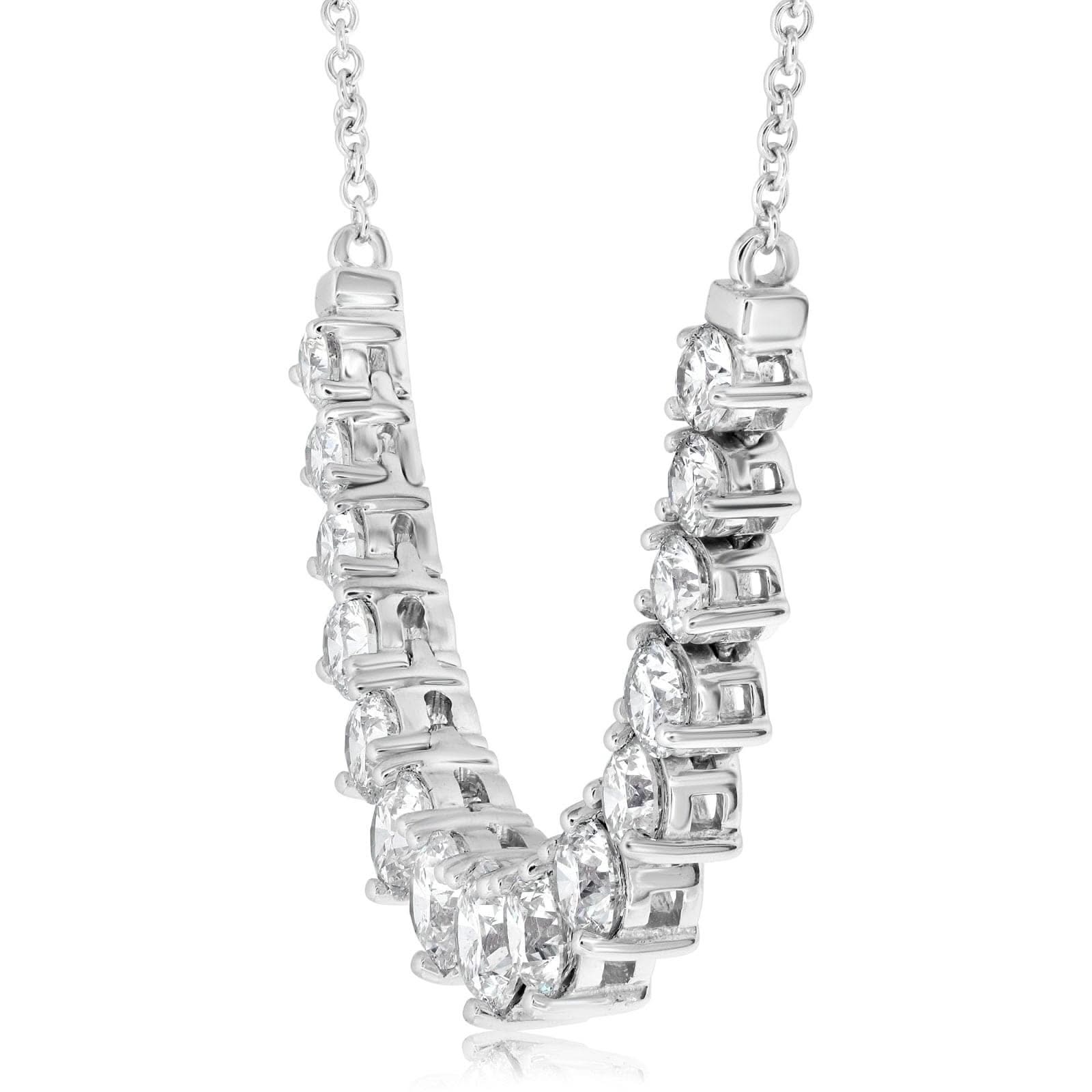 14K white gold graduated diamond station necklace from the Reis-Nichols Collection. The necklace features 17 round brilliant cut diamonds weighing 2.00 ctw. The necklace measures 18" in length.