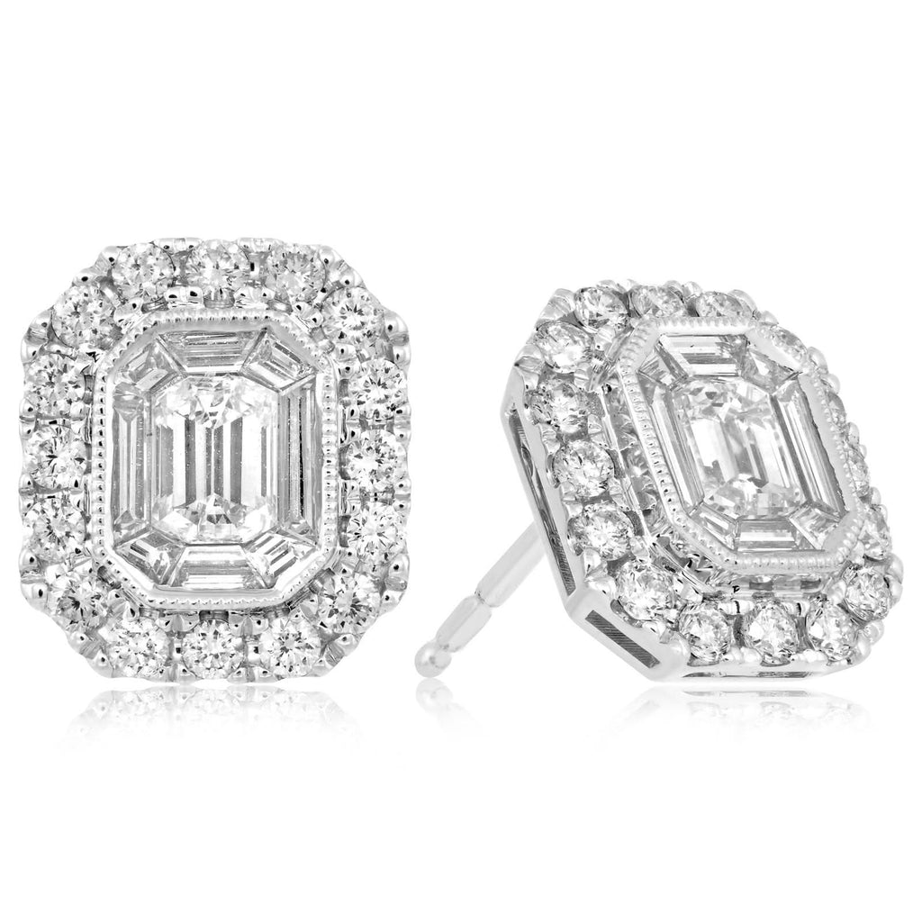 2.00 Carat Emerald & Baguette Diamond Halo Earrings