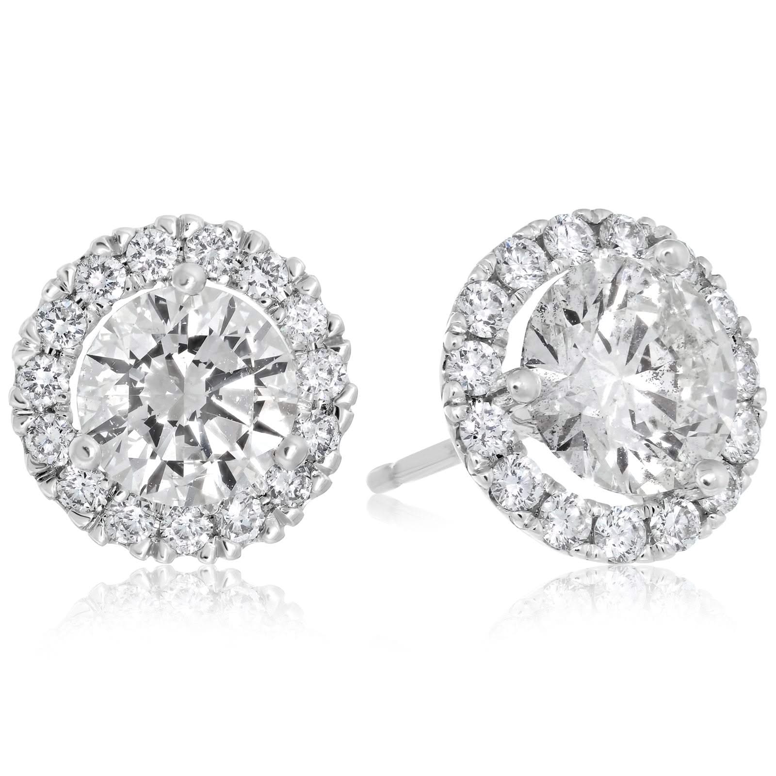14K white gold diamond margarita stud earrings designed and created by Reis-Nichols Jewelers. The earrings feature two round brilliant cut diamonds weighing 1.99 ctw surrounded by 30 round brilliant cut diamonds weighing .46 ctw. All our diamond stud earrings include diamonds or exceptional cut, color and clarity. Visit either our Indianapolis/Fashion Mall Commons or Greenwood store to view our entire collection of diamond stud earrings.