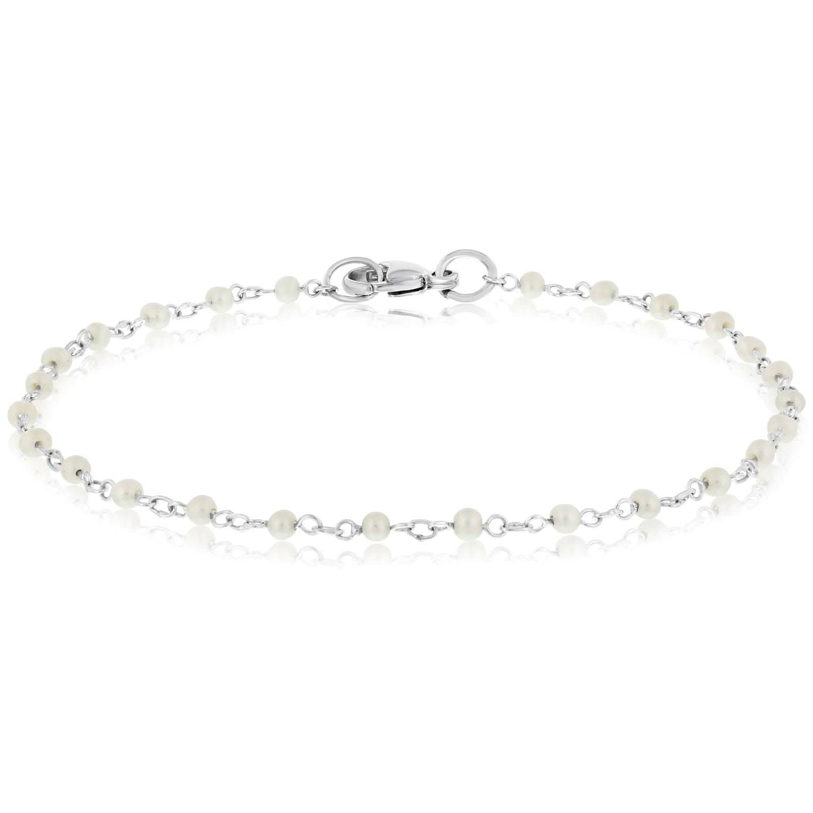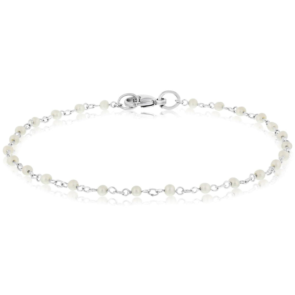 18K white gold 2mm pearl station bead bracelet from the Reis-Nichols Collection. The bracelet measures 7" in length.