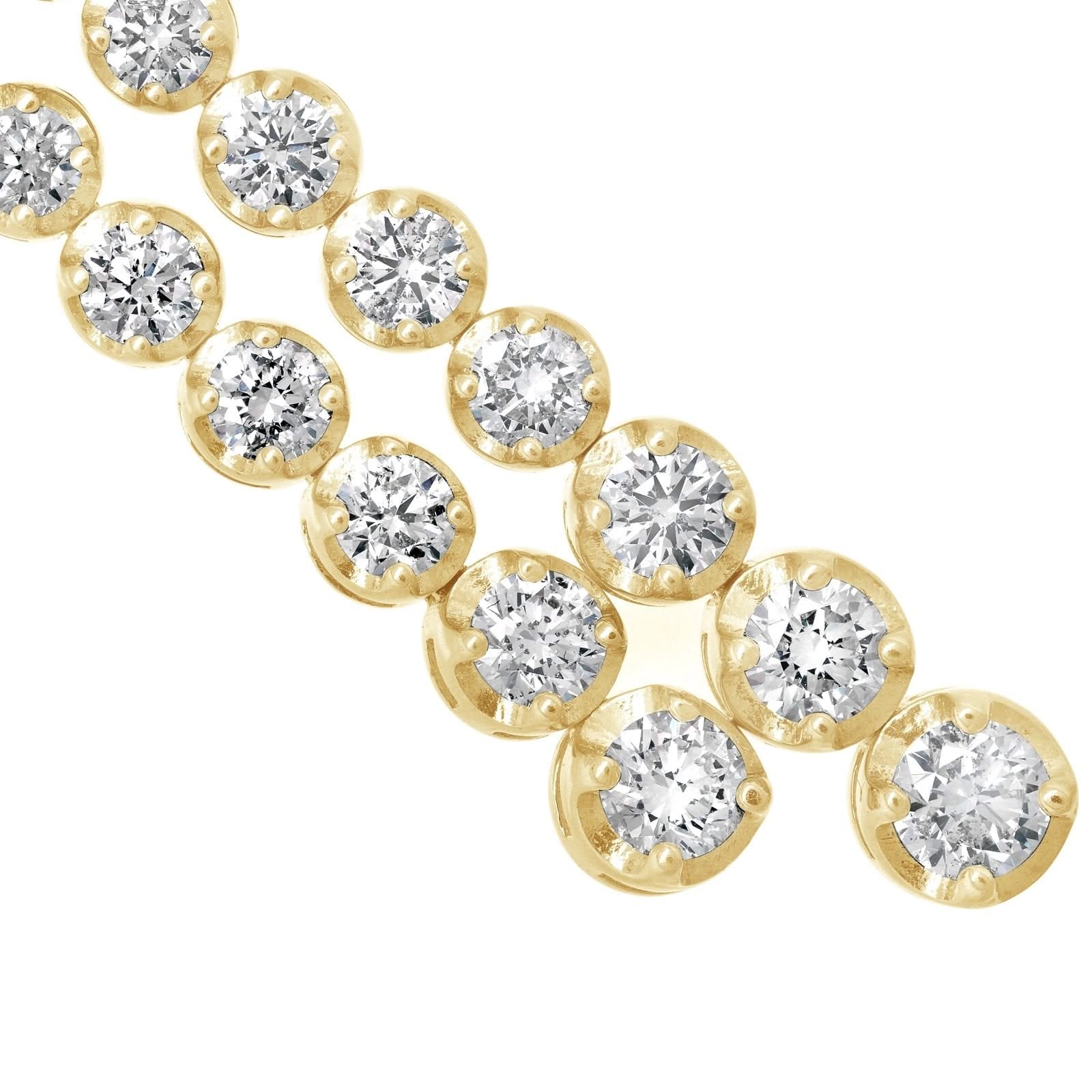 14K yellow gold graduated diamond double drop earrings from the Reis-Nichols Collection. The earrings feature 56 round brilliant cut diamonds weighing approximately 4.1 ctw (4.00-4.25).