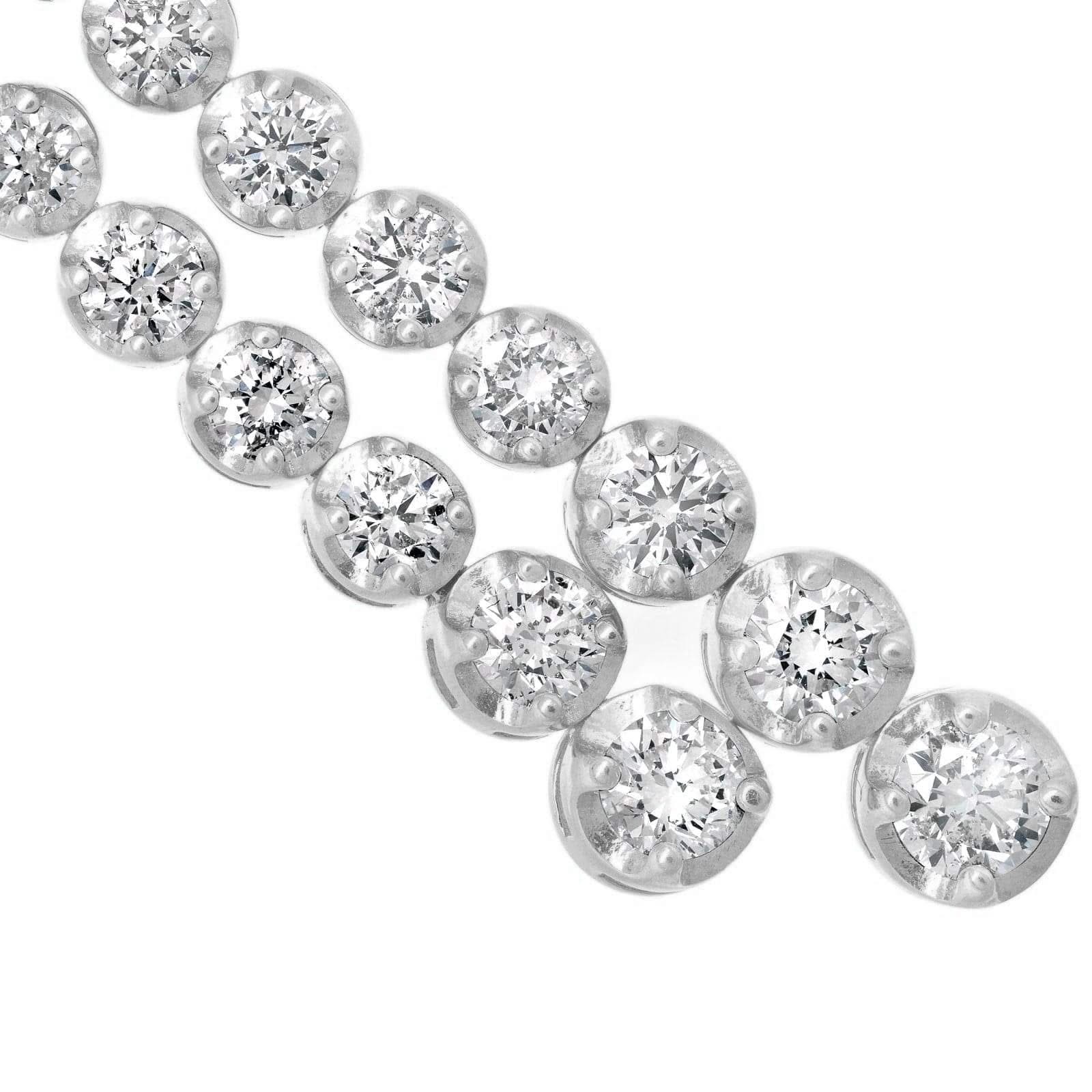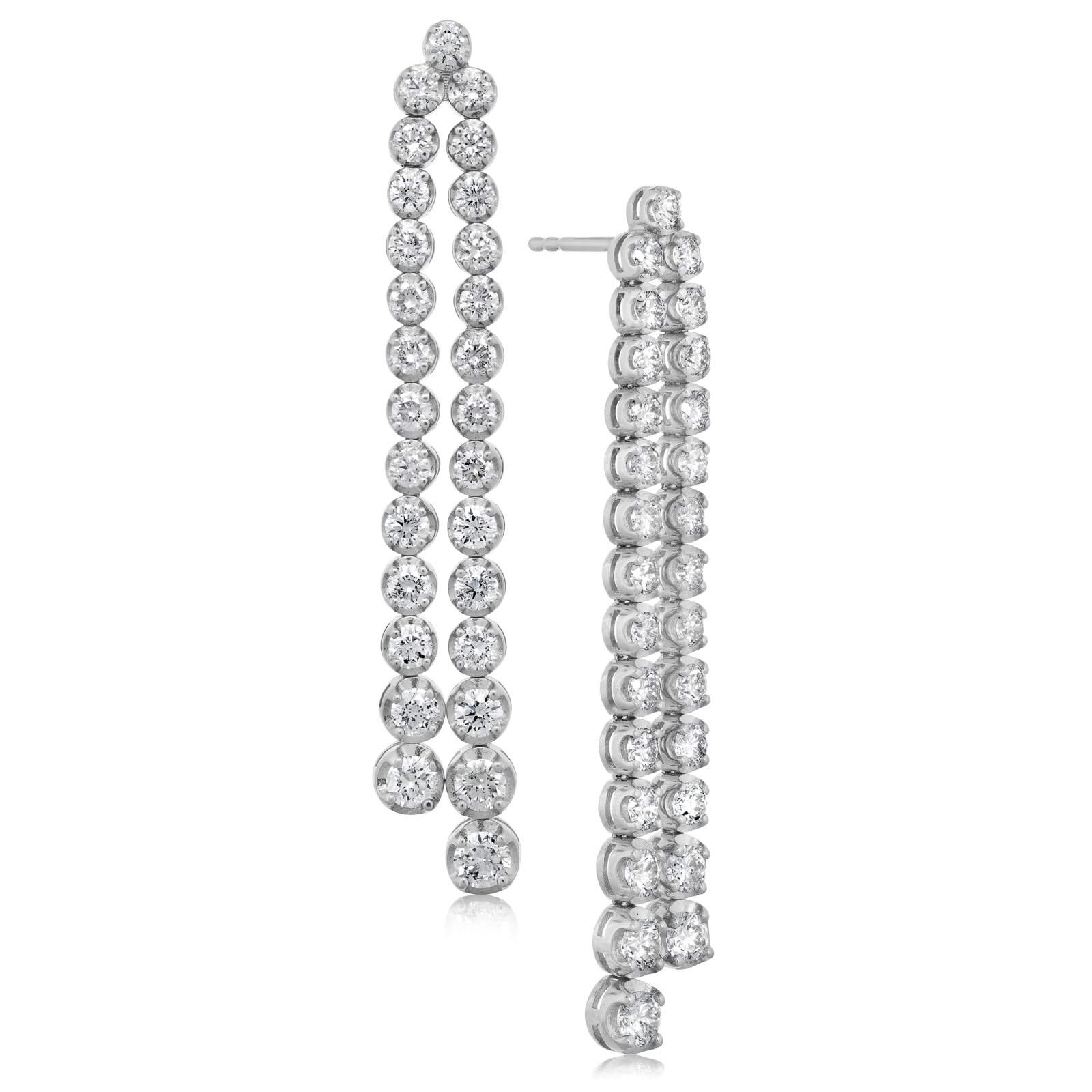 14K white gold graduated diamond double drop earrings from the Reis-Nichols Collection. The earrings feature 56 round brilliant cut diamonds weighing approximately 4.1 ctw (4.00-4.25).
