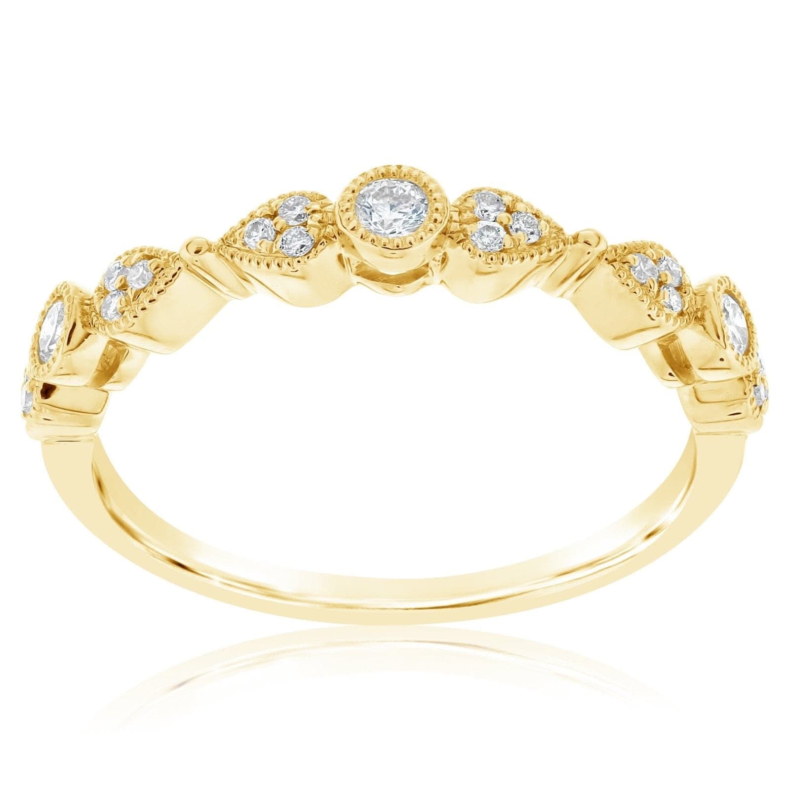 14K yellow gold diamond wedding band from the Reis-Nichols Collection. The band features 21 round brilliant cut diamonds weighing .18 ctw. Size 6.25 in stock now. Special order sizes available. Pricing may vary with size.