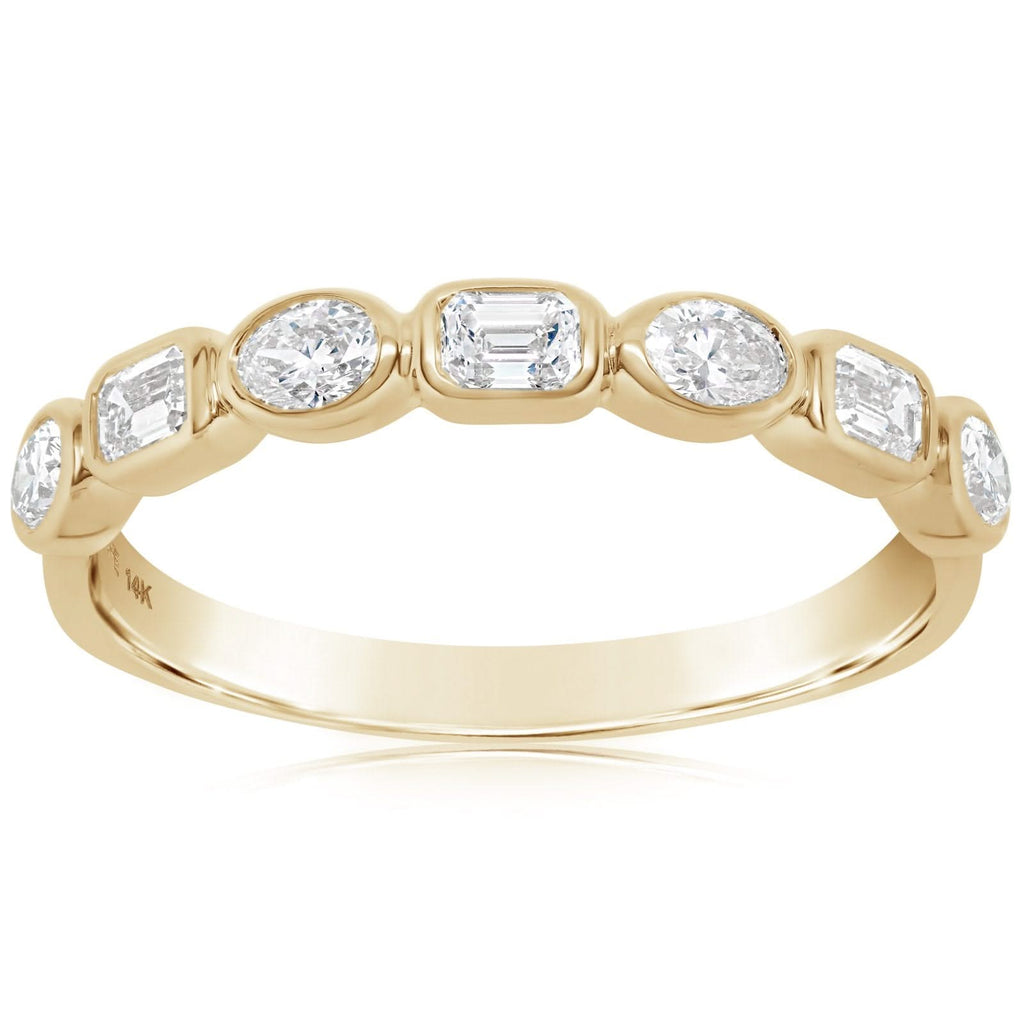 Alternating Emerald & Oval Cut Diamond Band