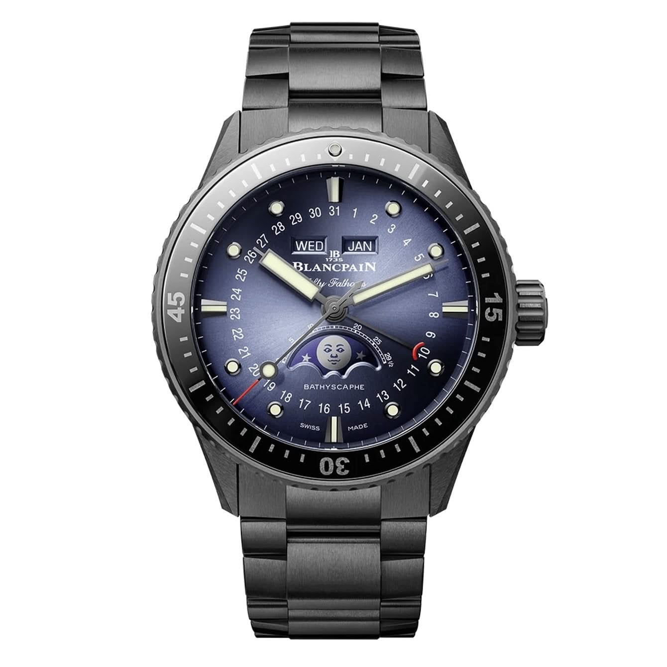 BLANCPAIN Fifty Fathoms Bathyscaphe Quantieme Complet Calendar Phases de Lune 43.6mm Watch