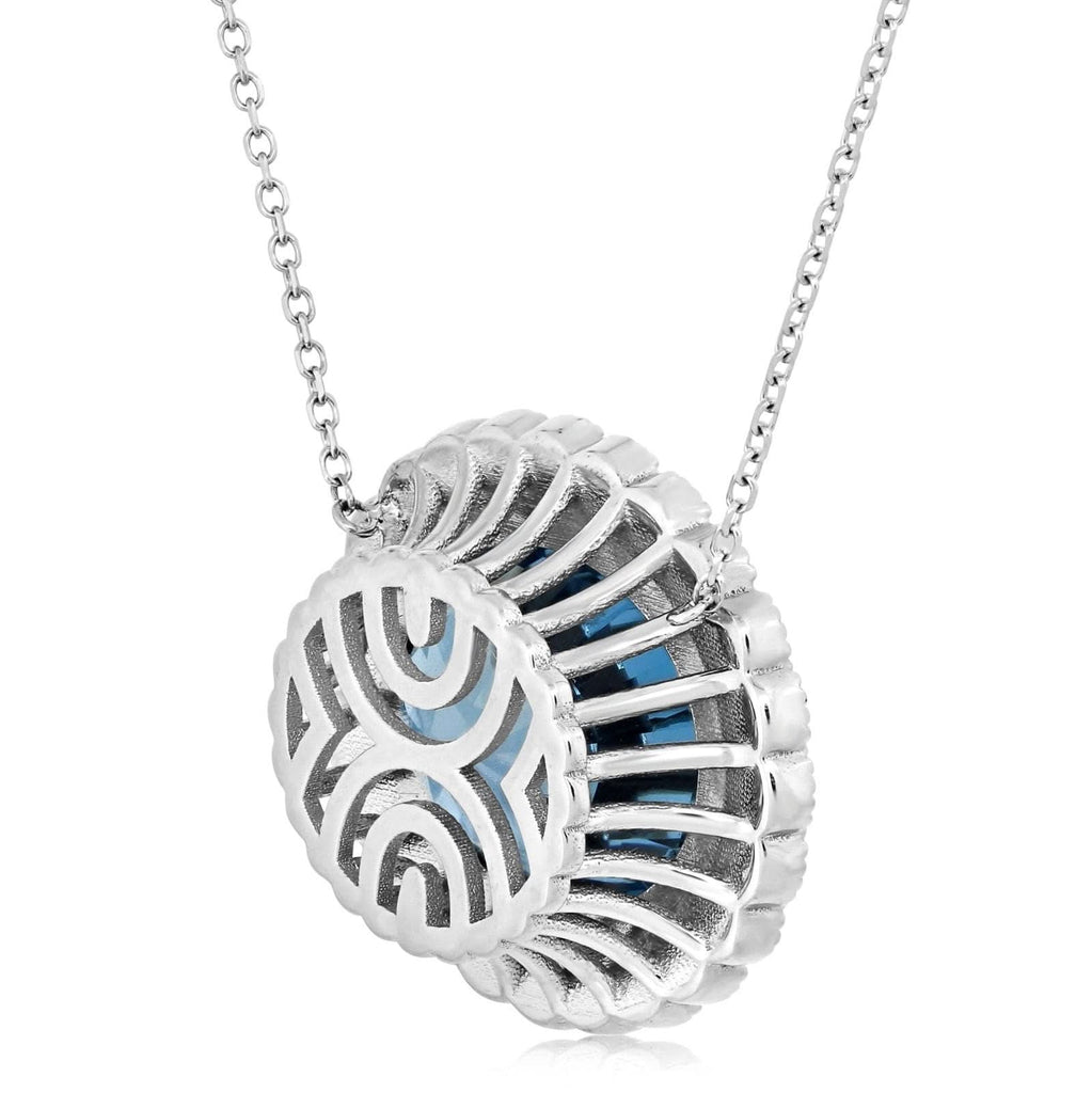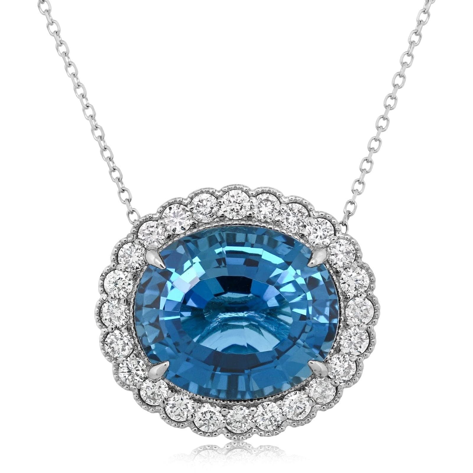 Blue Oval Topaz & Diamond Halo Pendant