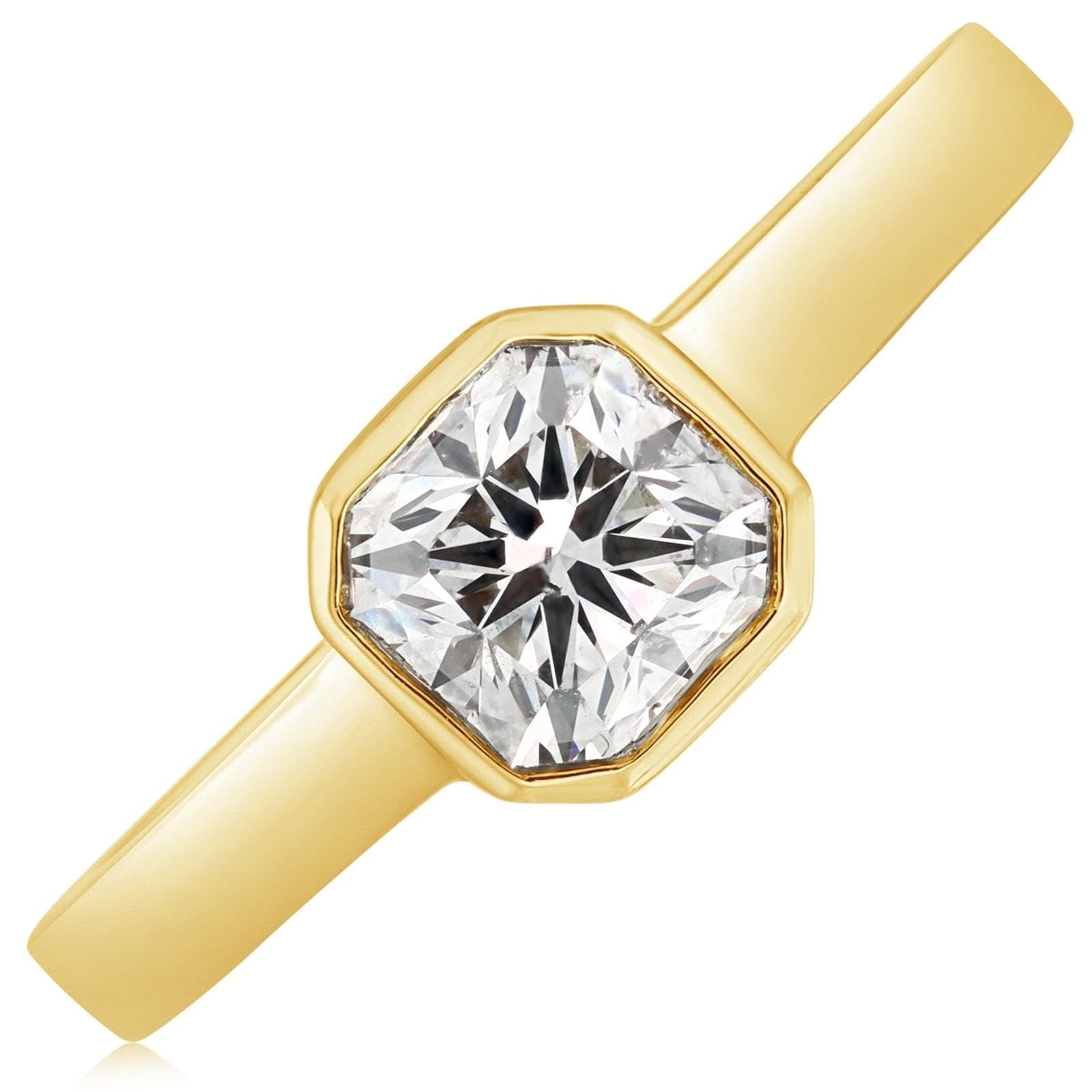 14K yellow gold diamond solitaire engagement ring designed and created by Reis-Nichols Jewelers. The ring features one square radiant cut diamond weighing 1.02 ct. Size 6.5 in stock now. Special order sizes available. Pricing may vary with size.
