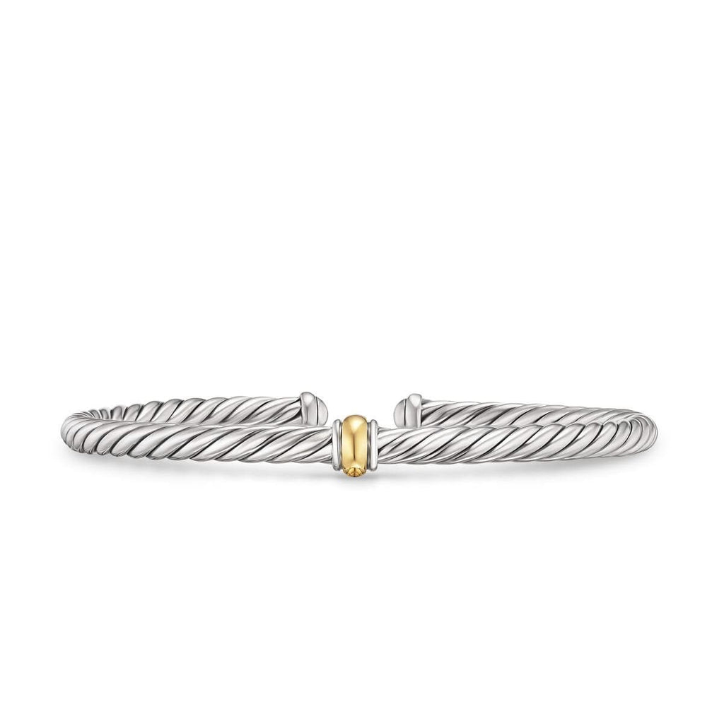 DAVID YURMAN Cable Flex Station Bracelet in Sterling Silver with 14K Yellow Gold, 4mm