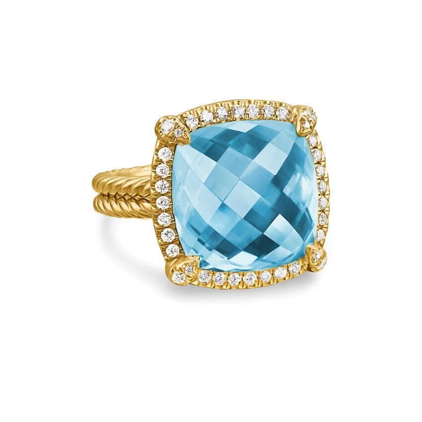 DAVID YURMAN Chatelaine® Pavé Bezel Ring in 18K Yellow Gold with Blue Topaz and Diamonds, 14mm