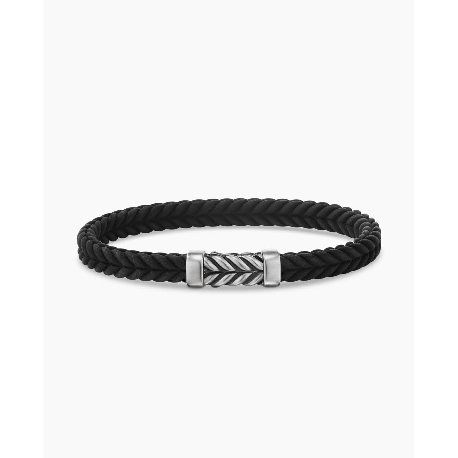 DAVID YURMAN Chevron Bracelet in Black Rubber with Sterling Silver, 6mm